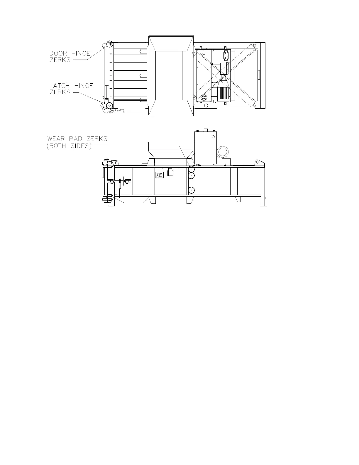12. Inspect the door latch. Check general condition, welds and structure. Inspect the hinge pins for wear.