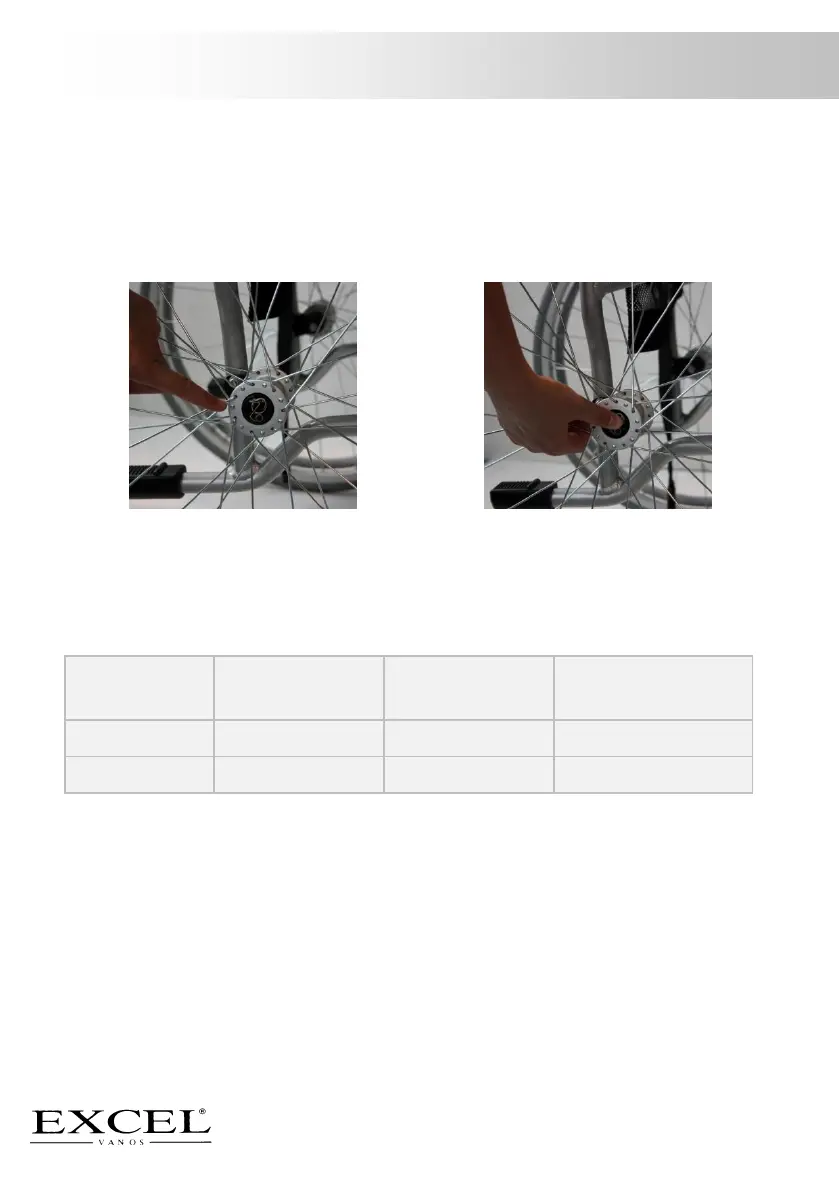 The rear wheels of the wheelchair are removable by using the 'quick-release’ system: