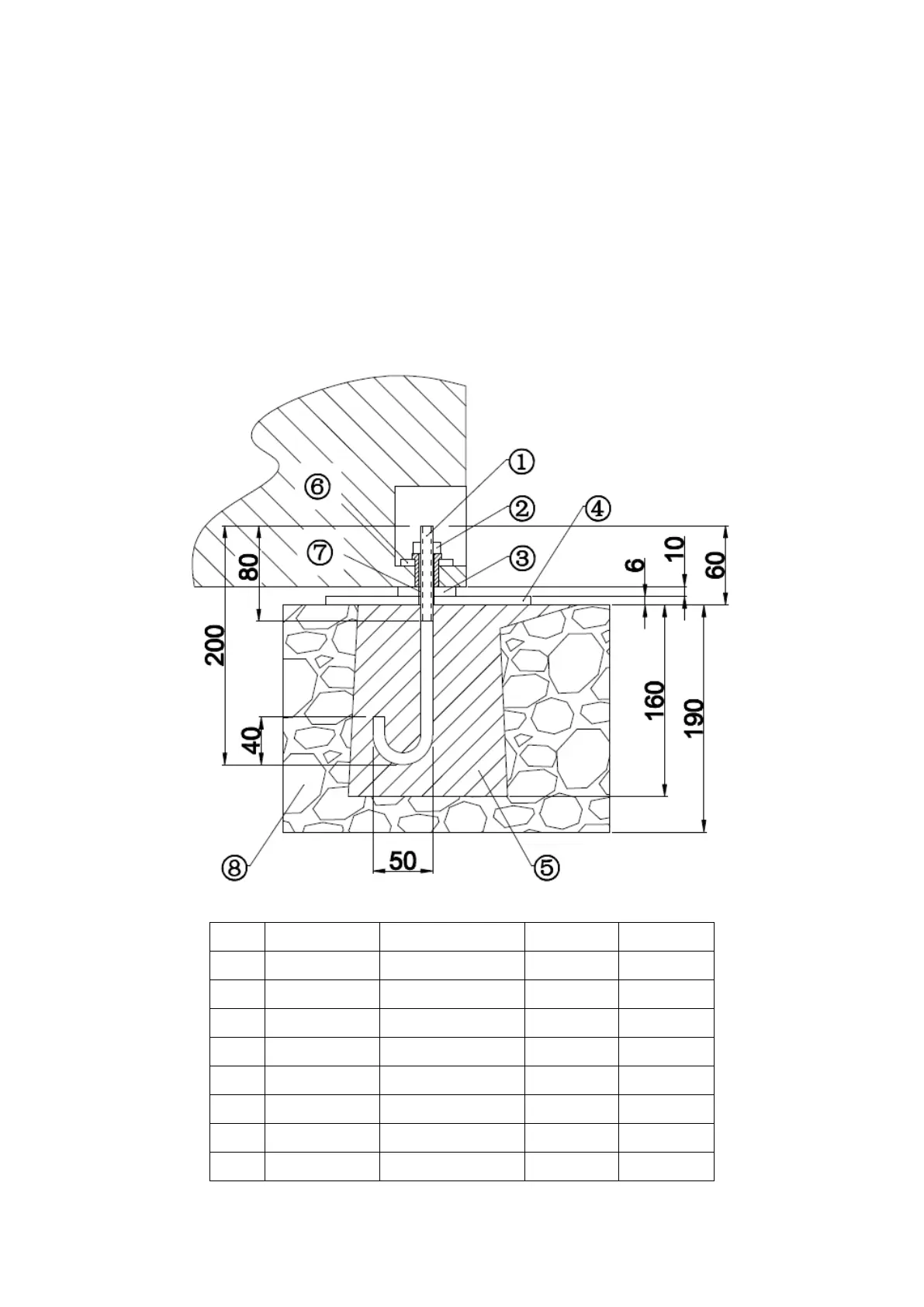 d. Required bolts, nuts, washers for the base installation must comply with the specifications of this