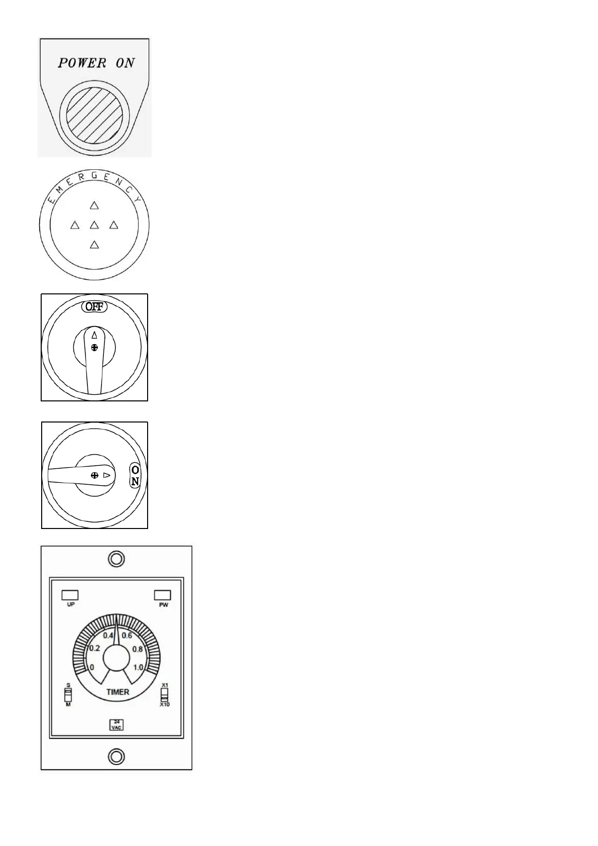 1. A safety switch to control the power of machine, turn OFF to stop all power,