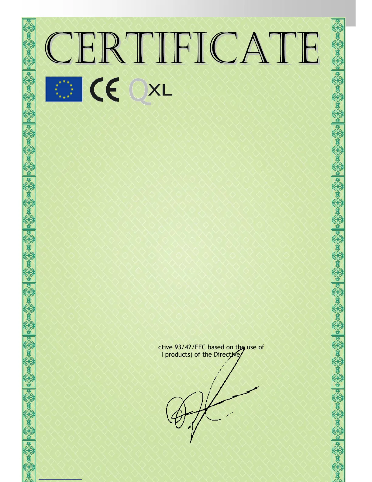 The product is in conformity with Directive 93/42/EEC based on the use of a Technical construction