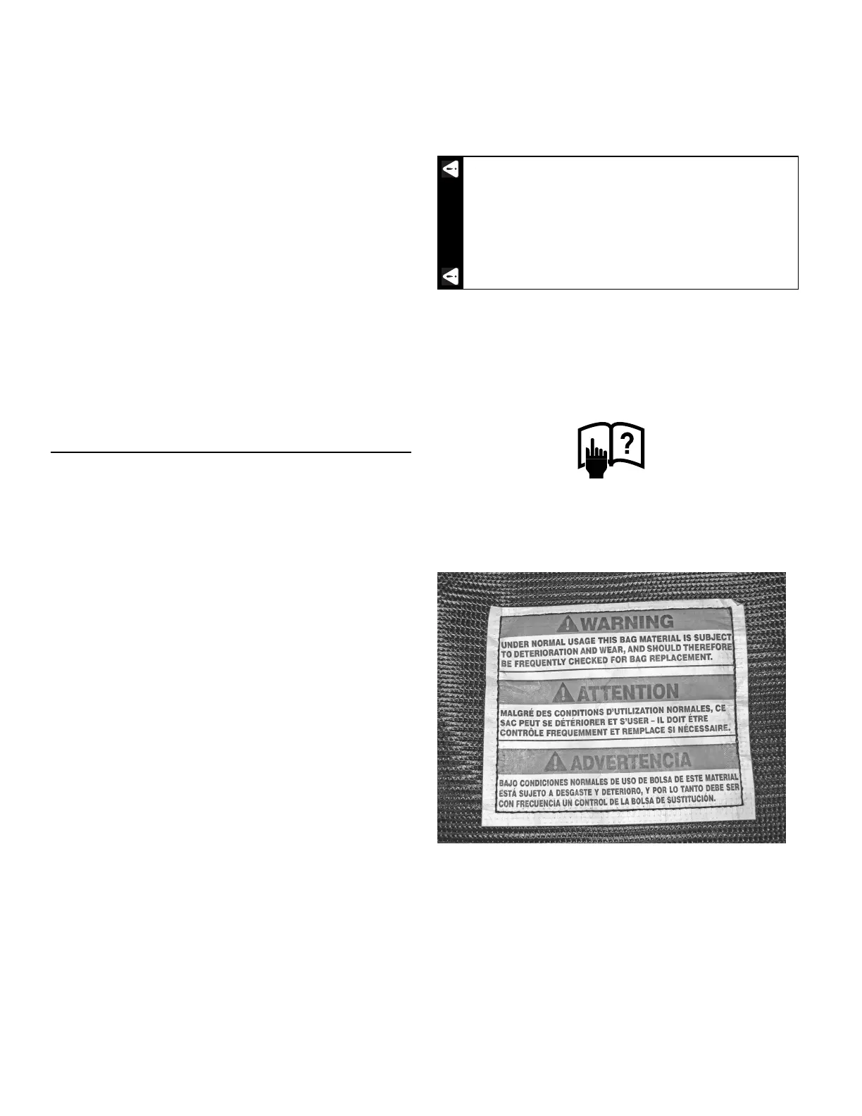 • Under normal usage this bag material is subject to deterioration