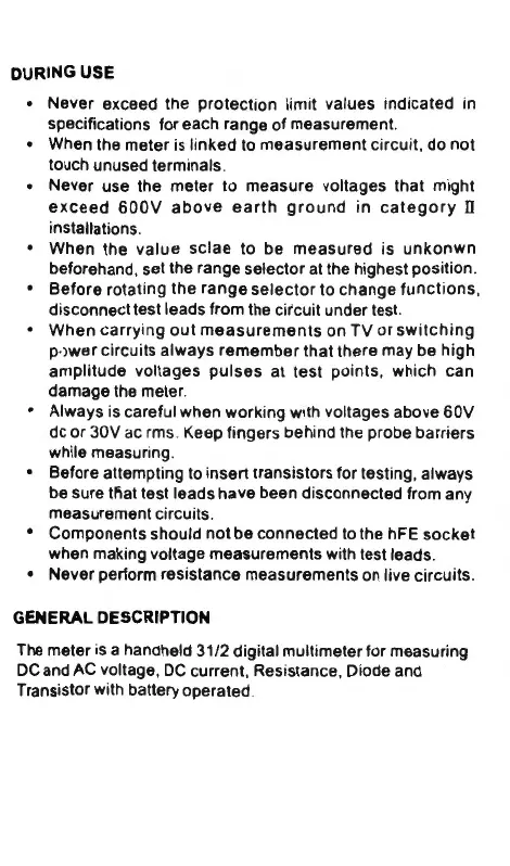 meter is a handheld 31/2 digital multimeter for measuring