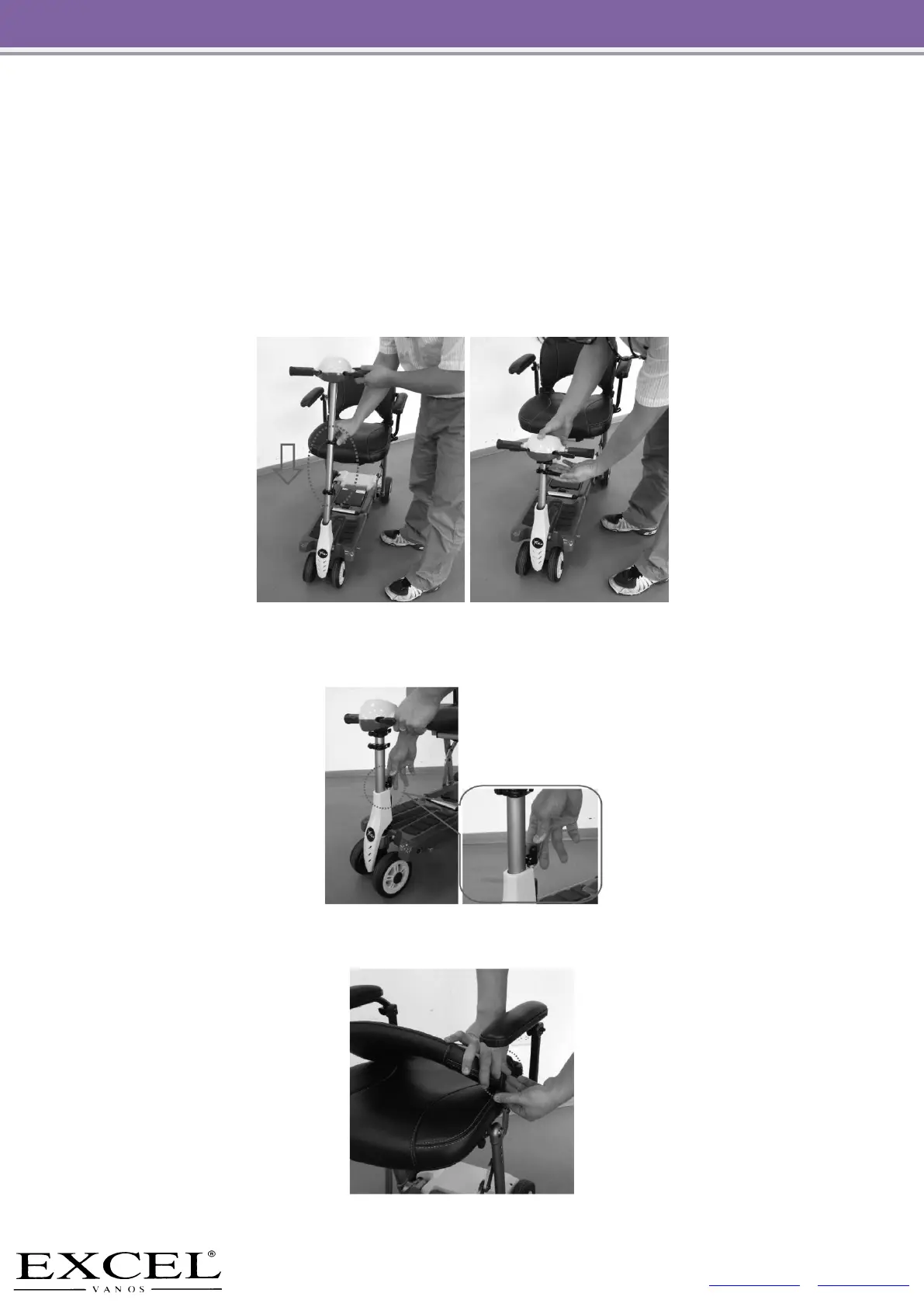 This scooter can be folded for transportation or storage. Follow the procedures below to fold and