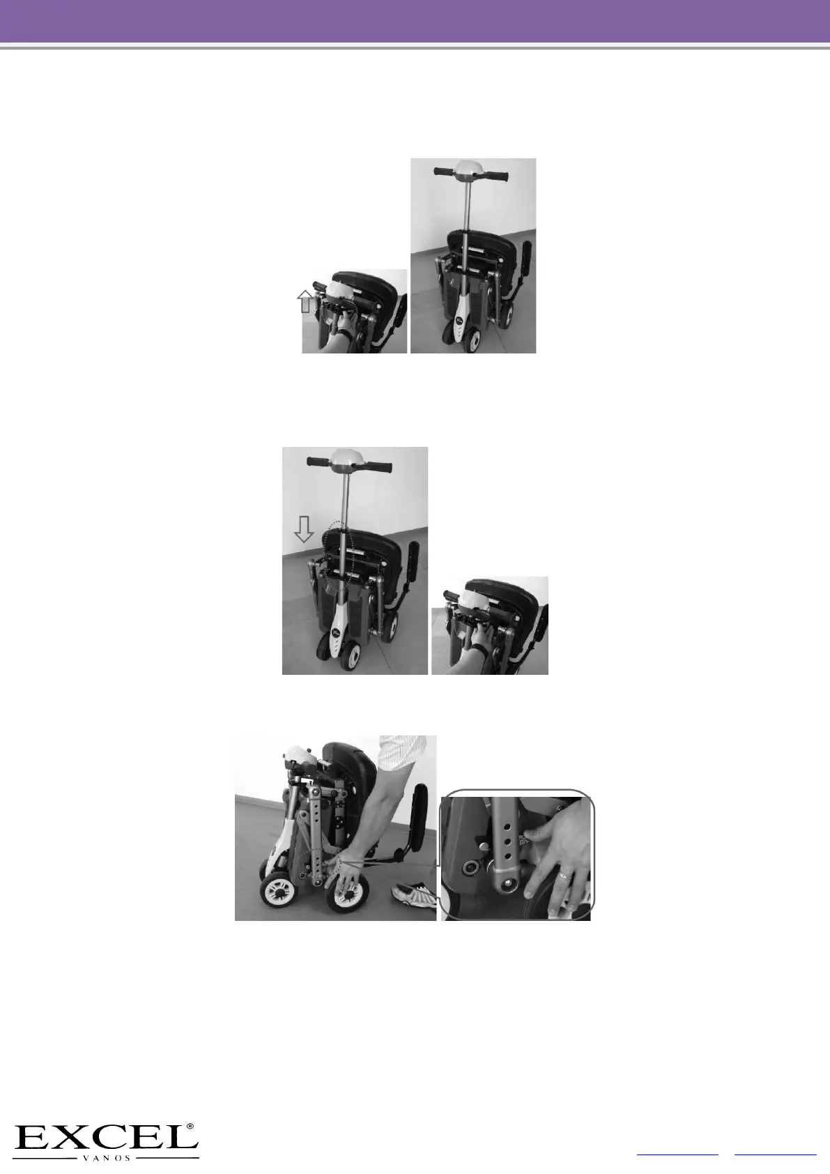 Step 2: Press down the Release Handle above the Rear Wheel to unlock the folded frame.