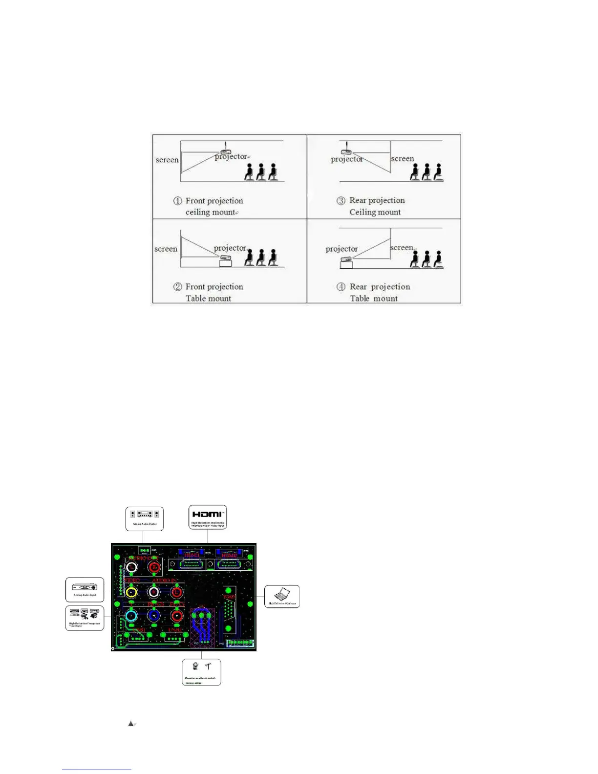 4) Please ensure enough ventilation is around the projector; otherwise it may shorten service life of projector.