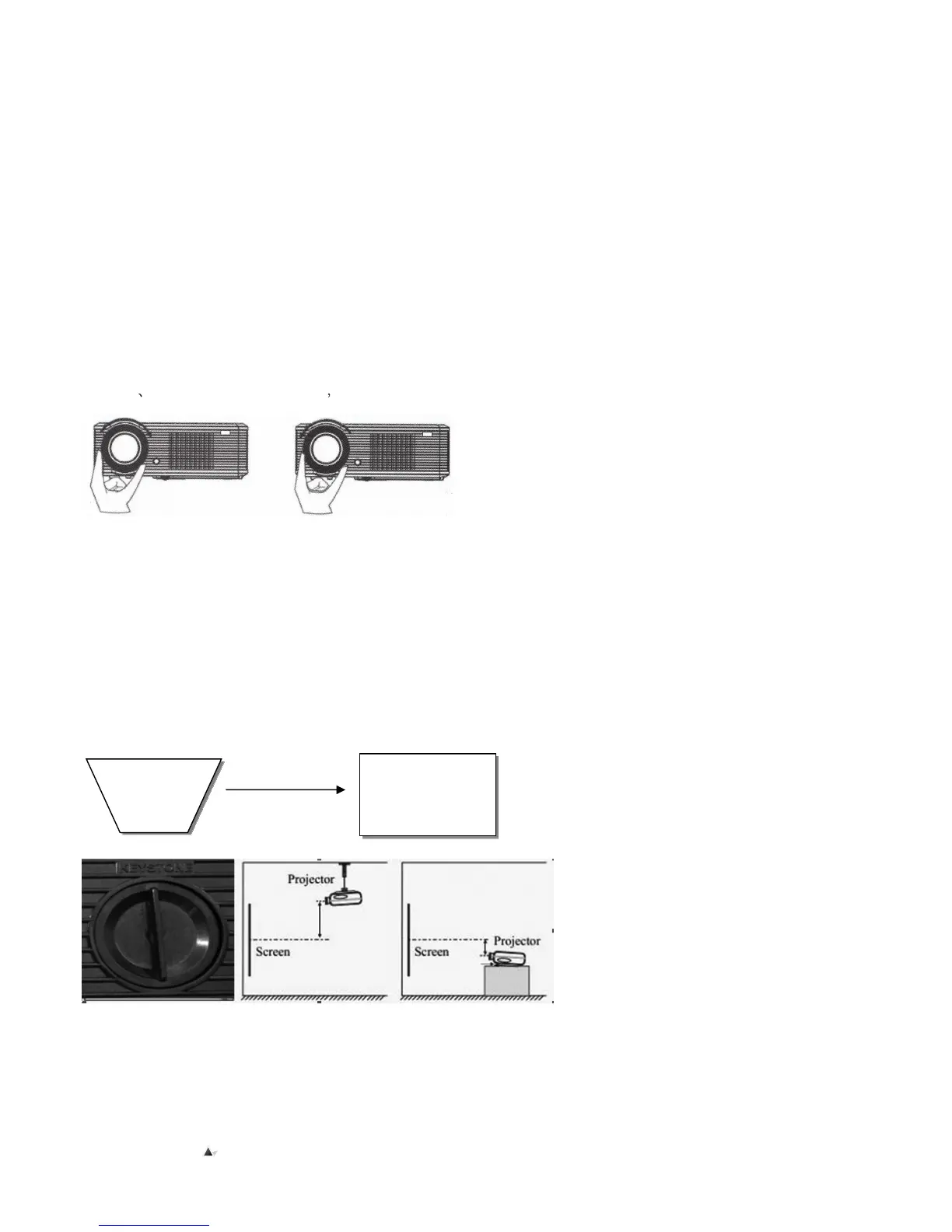 If the trapezoid correction fails to resolve the image shape, please reduce the vertical height of projector in relation to the center of the