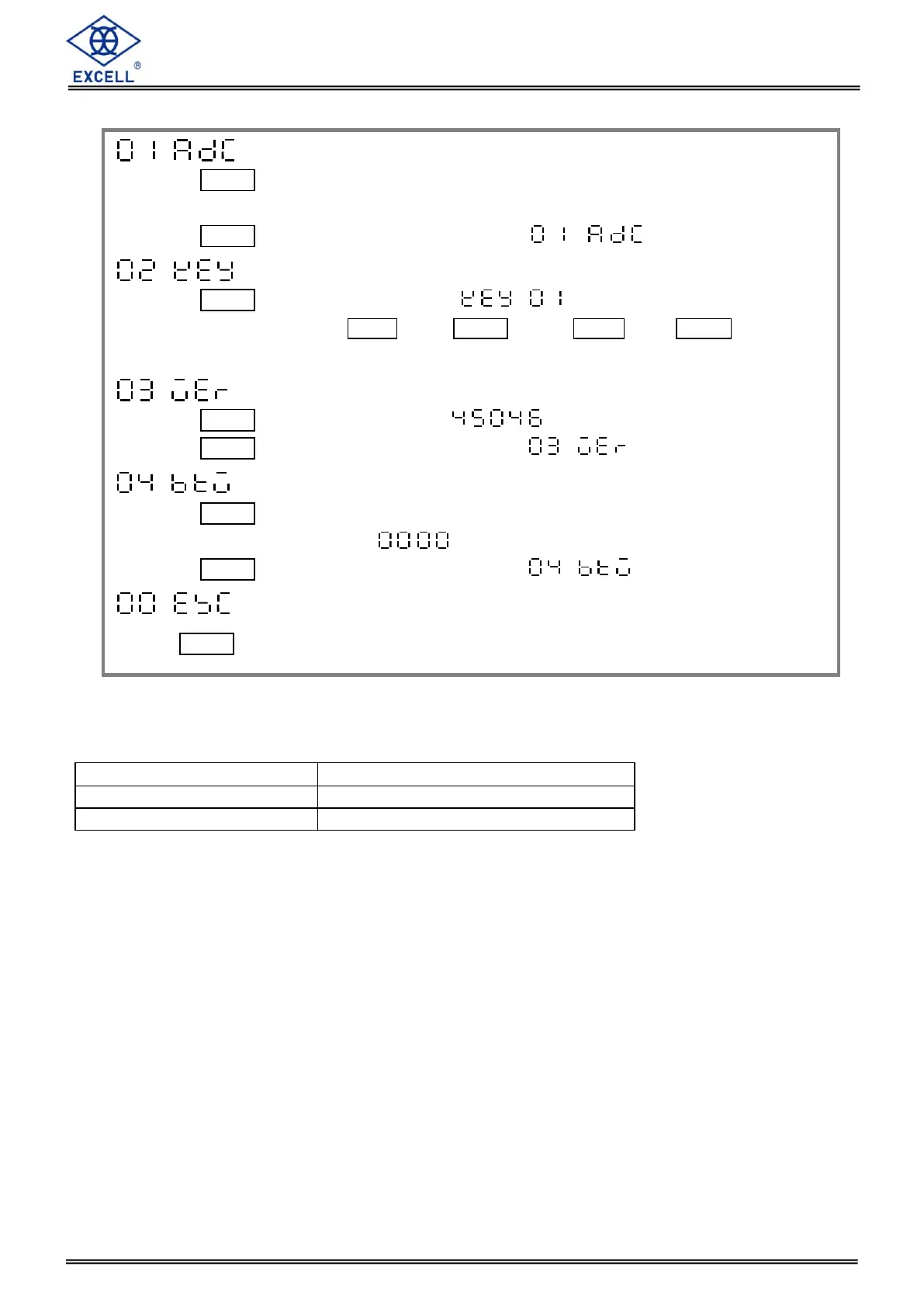 key to return, the display shows