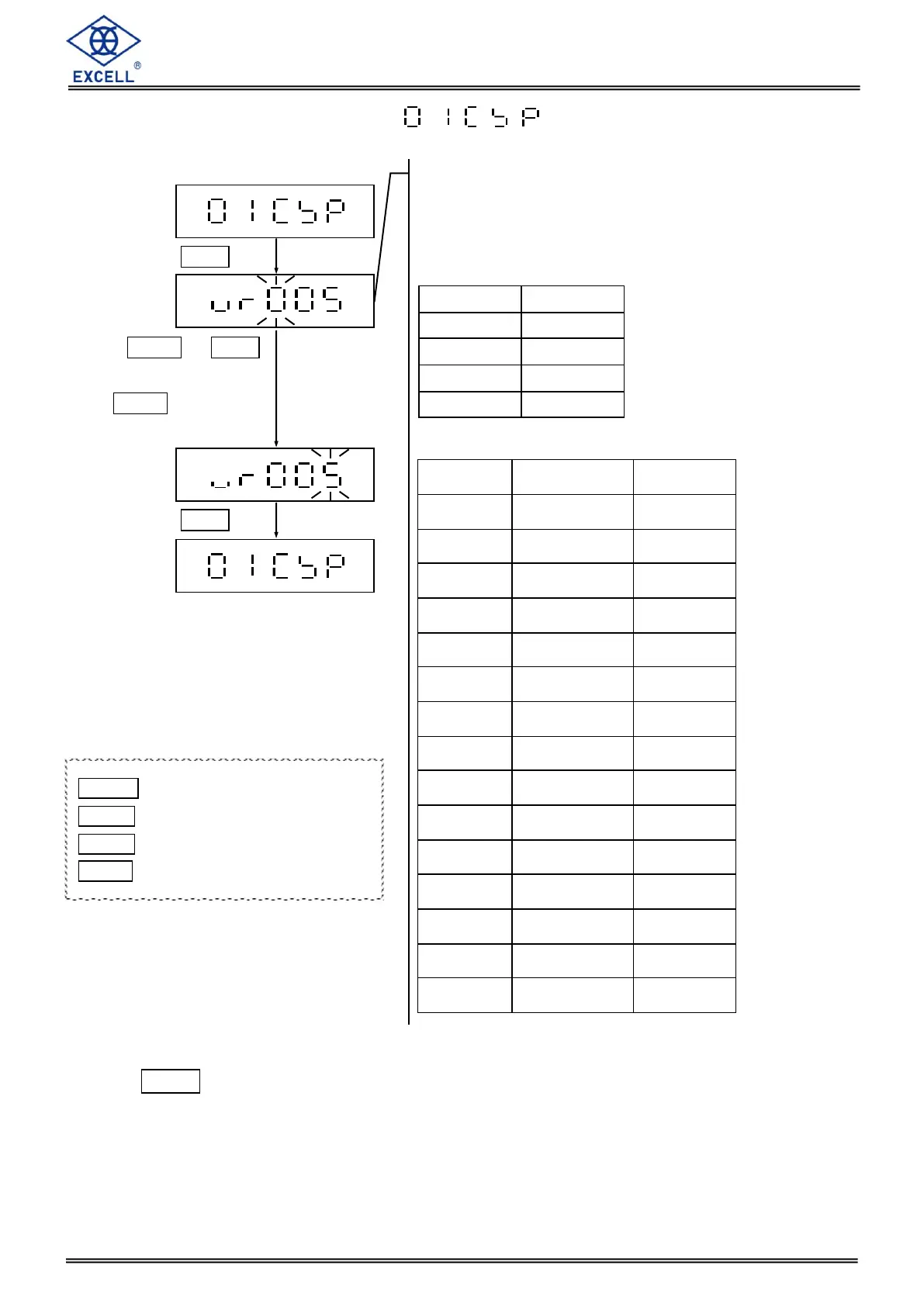 MODE Upward digit selecting (0-9)