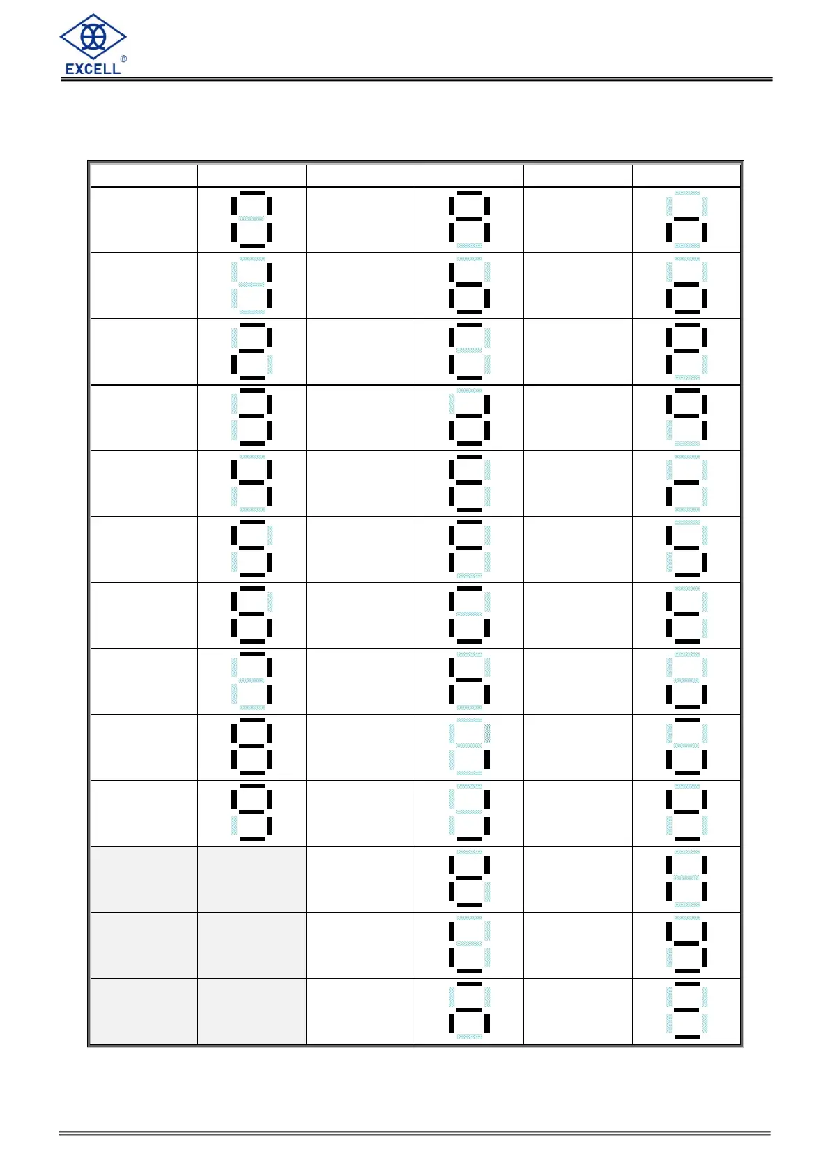Excell FJ5 - Appendix 1 7-Segment Display Characters