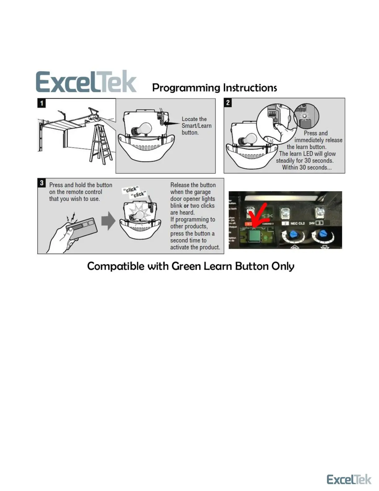 ExcelTek RC-07 - Programming Steps; Compatibility: Green Learn Button