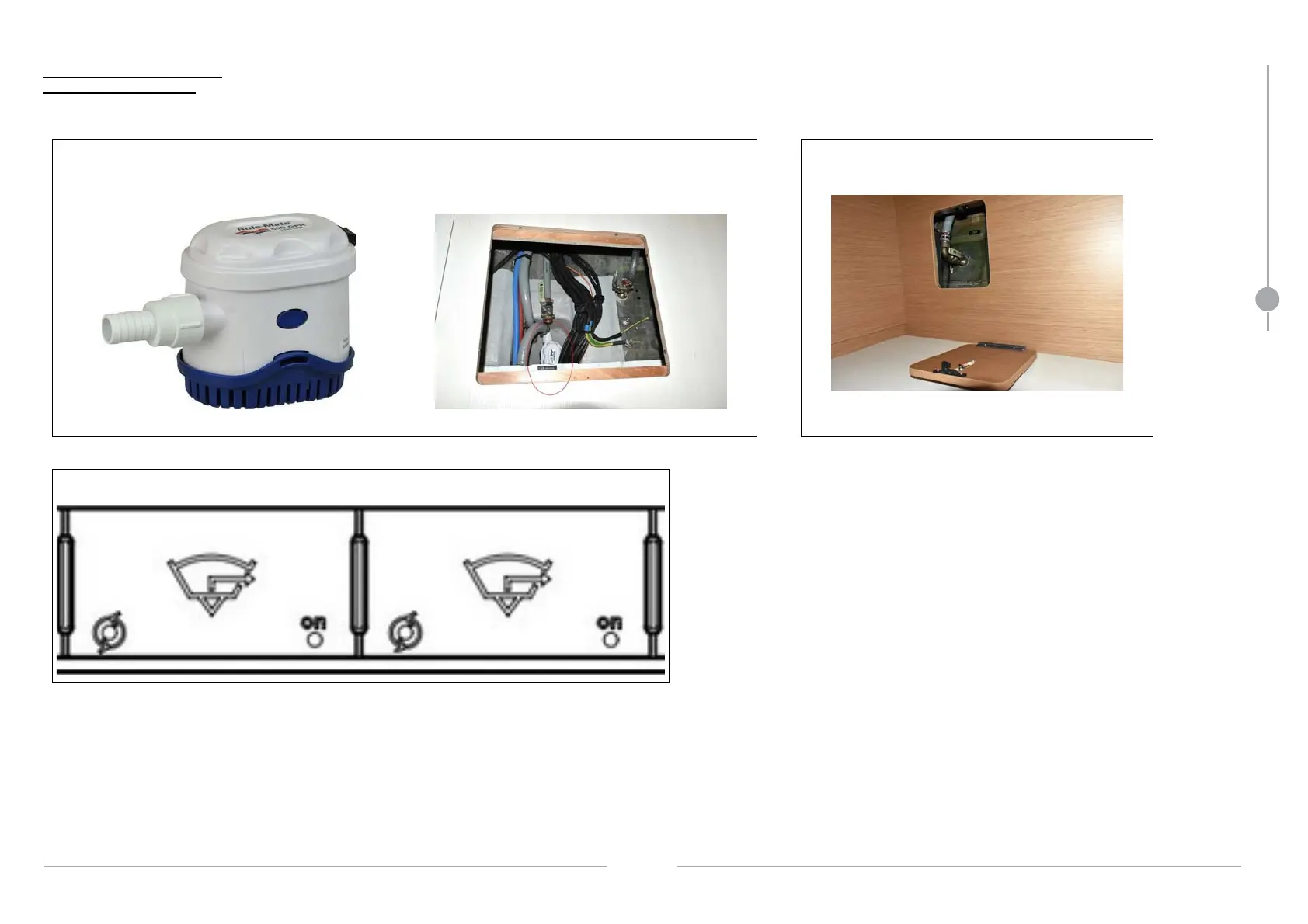 - When the indicator light on the bottom left lights up, the bilge pump is in operation.