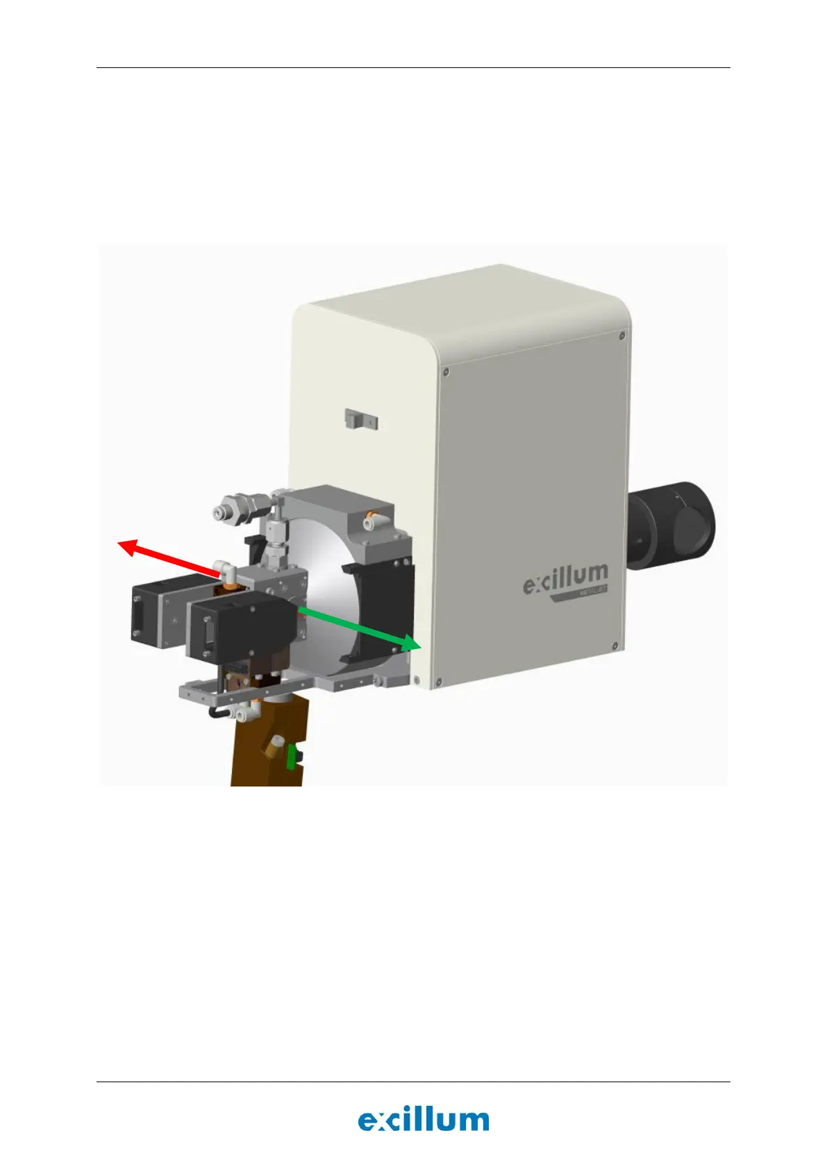 Figure 1-3. MetalJet D2+ system configured with the x-ray output on both sides (dual port). Red arrow indicate