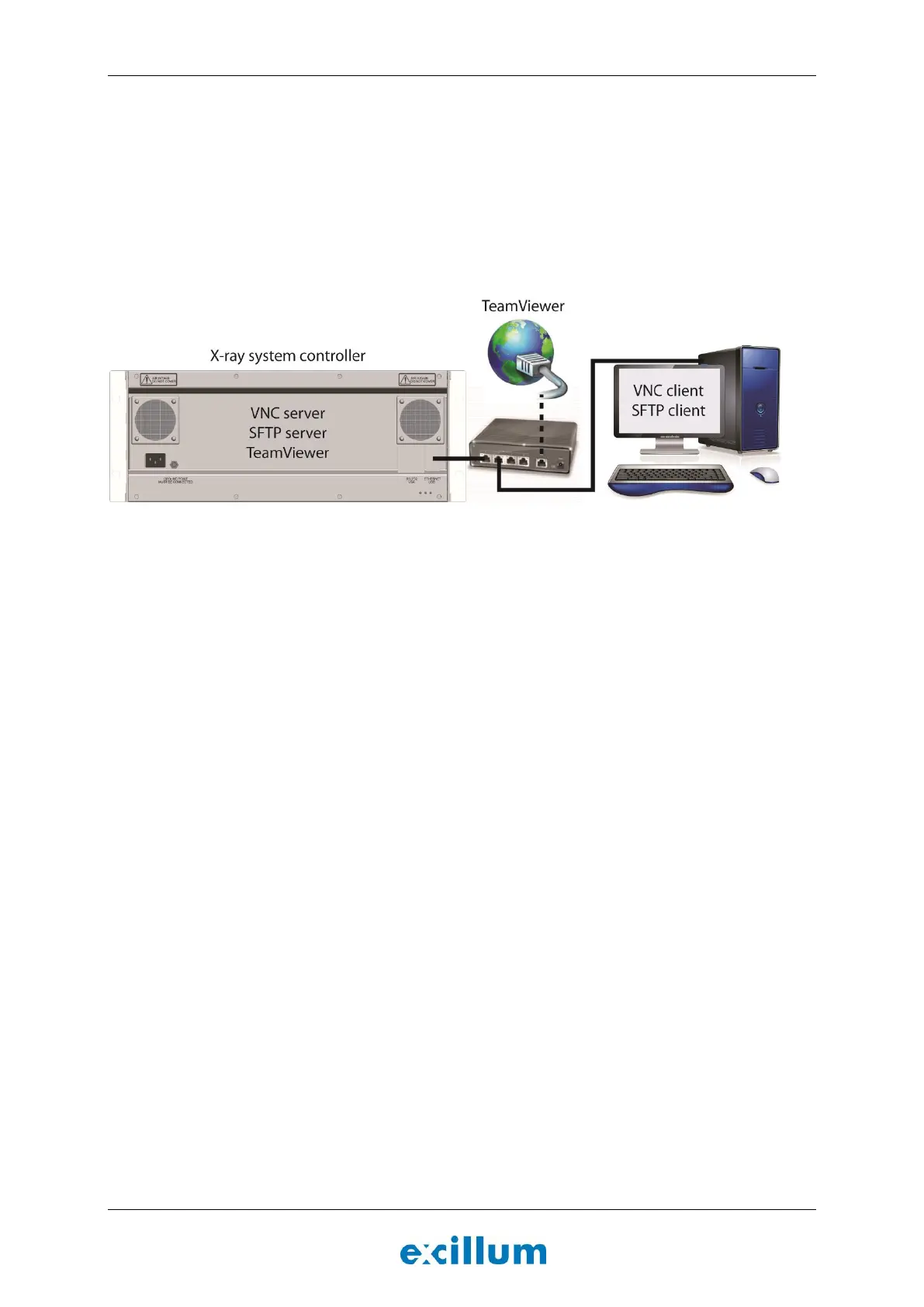 The x-ray system controller runs a VNC server and a SFTP server that can be used to remote control the