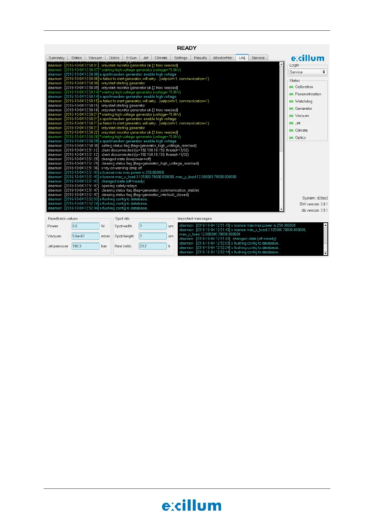 After the parametrization is completed it is possible to set the electron-beam power, spot size and position in