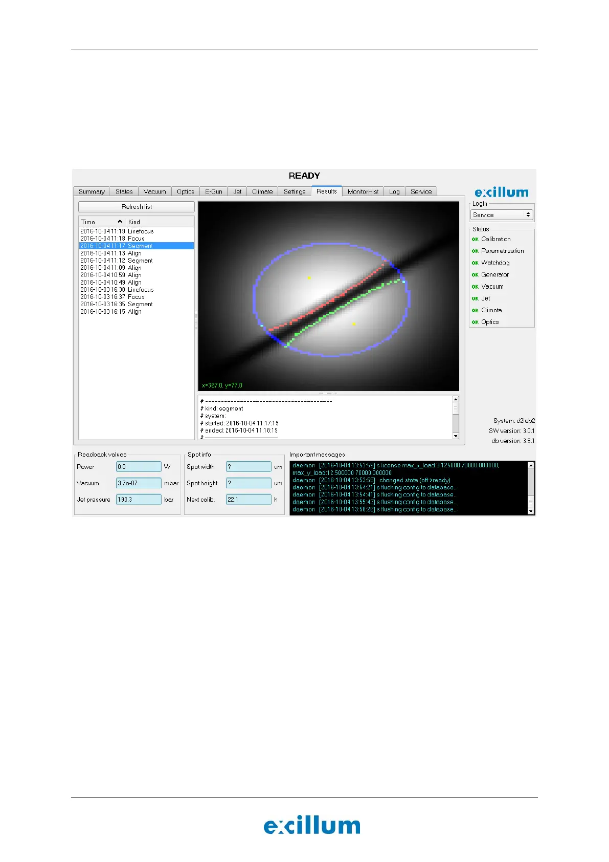 10. Go to the “Results” tab, select “Segment” in the images list and inspect the image. If the system is ok