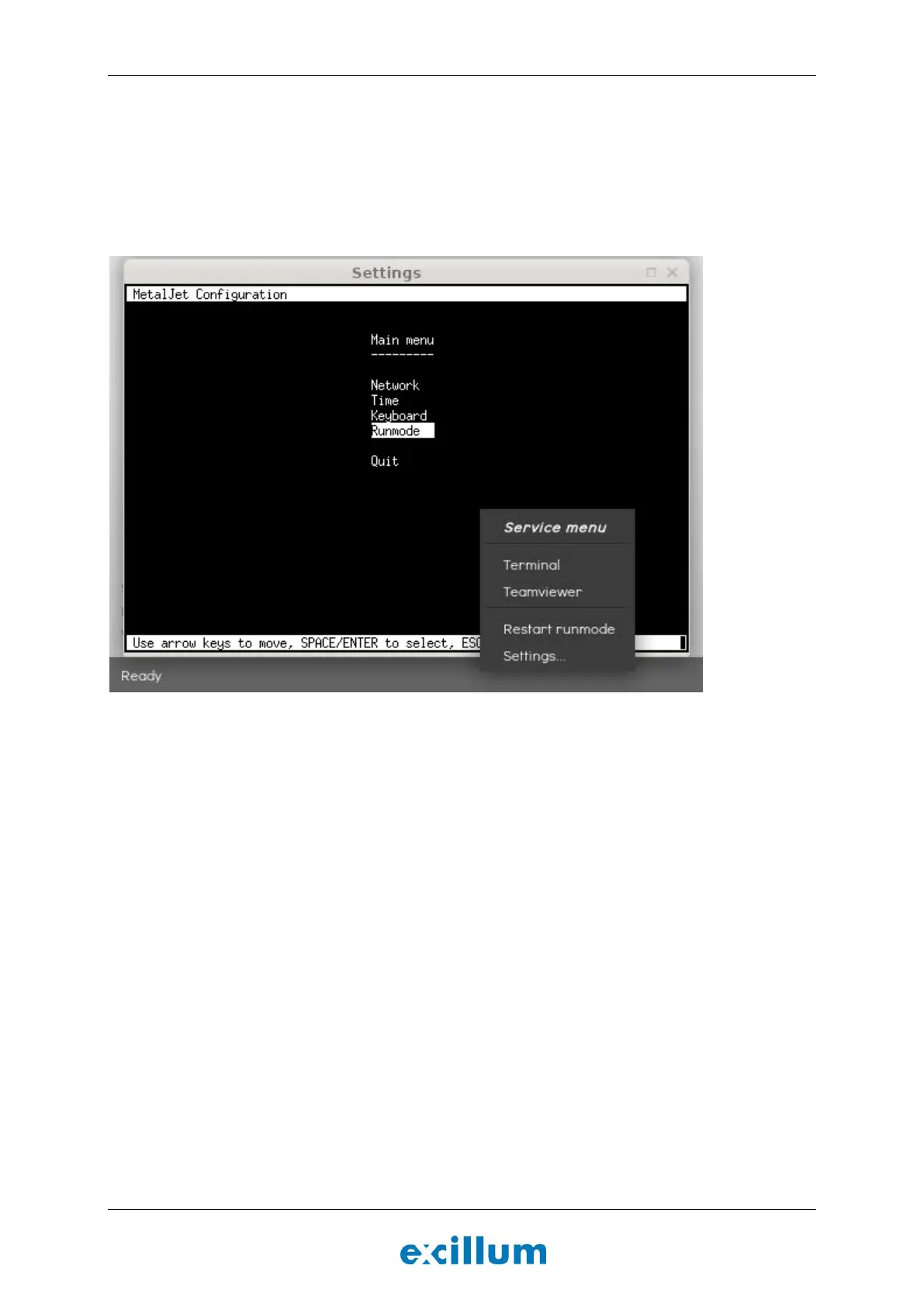 Note: The menu “Runmode” should only be used by trained service technicians.