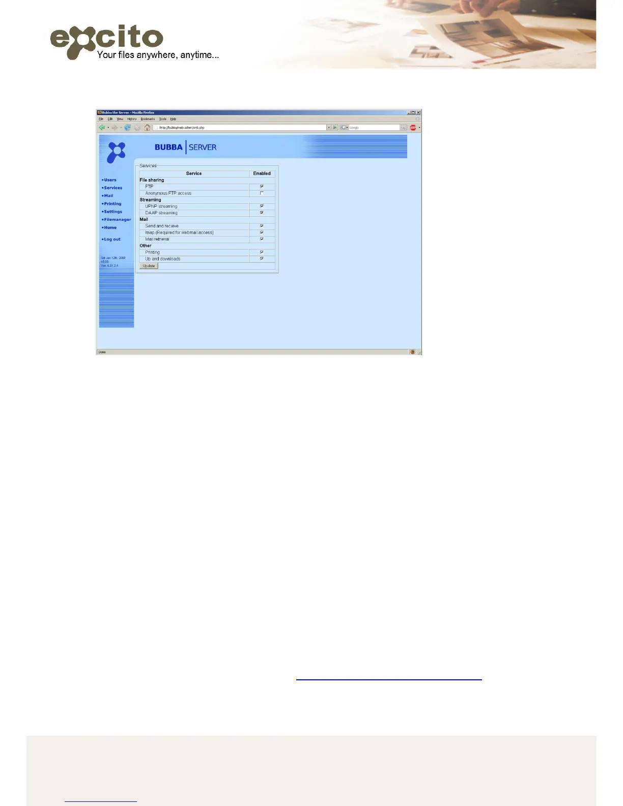 Under ‘Services’ you find this page.