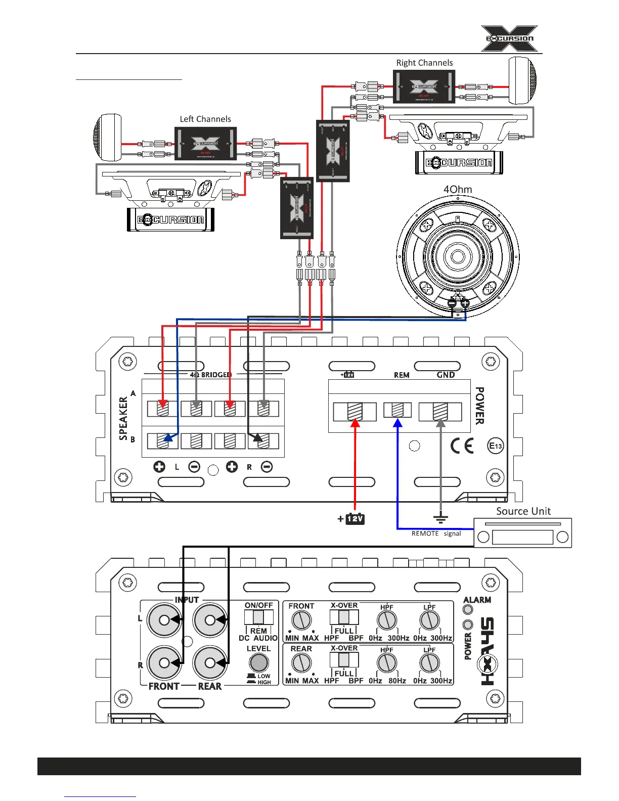 RCA LOW LEVEL or SPEAKER HIGH LEVEL signals via optional XML Adapter
