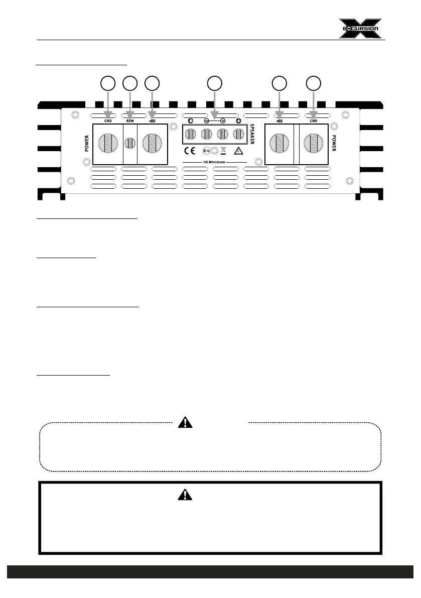 Never connect the speaker cables with chassis ground, effect short circuit and damage amplifier.