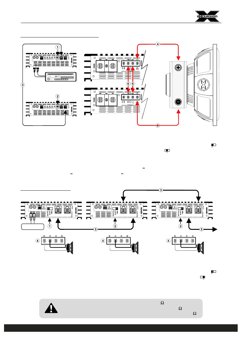 1. Connect 1 amplifier to head unit and slide the MASTER/SLAVE/ to MASTER position. ( )