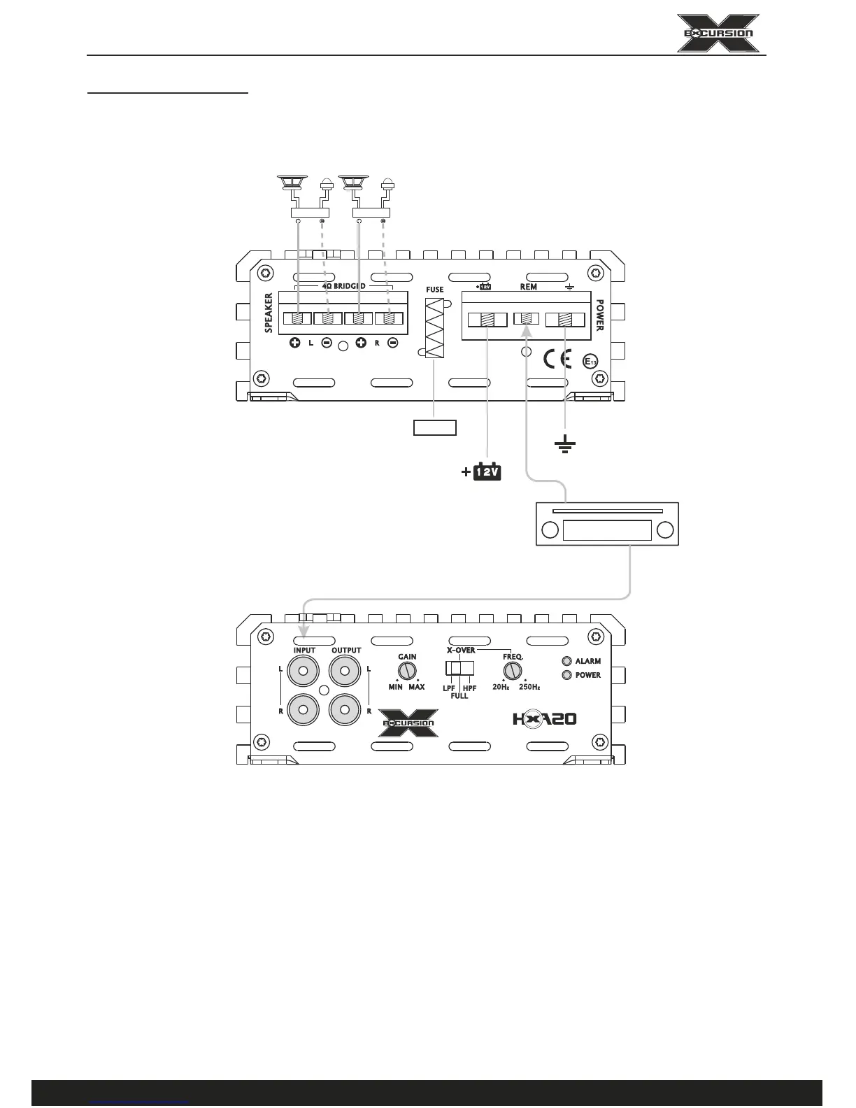 EXCURSION HXA2K - HXA 1 K; HXA 2 K; HXA 3 K; HXA 4 K; HXA 5 K Wiring (2 Amplifier BRIDGE Mode)