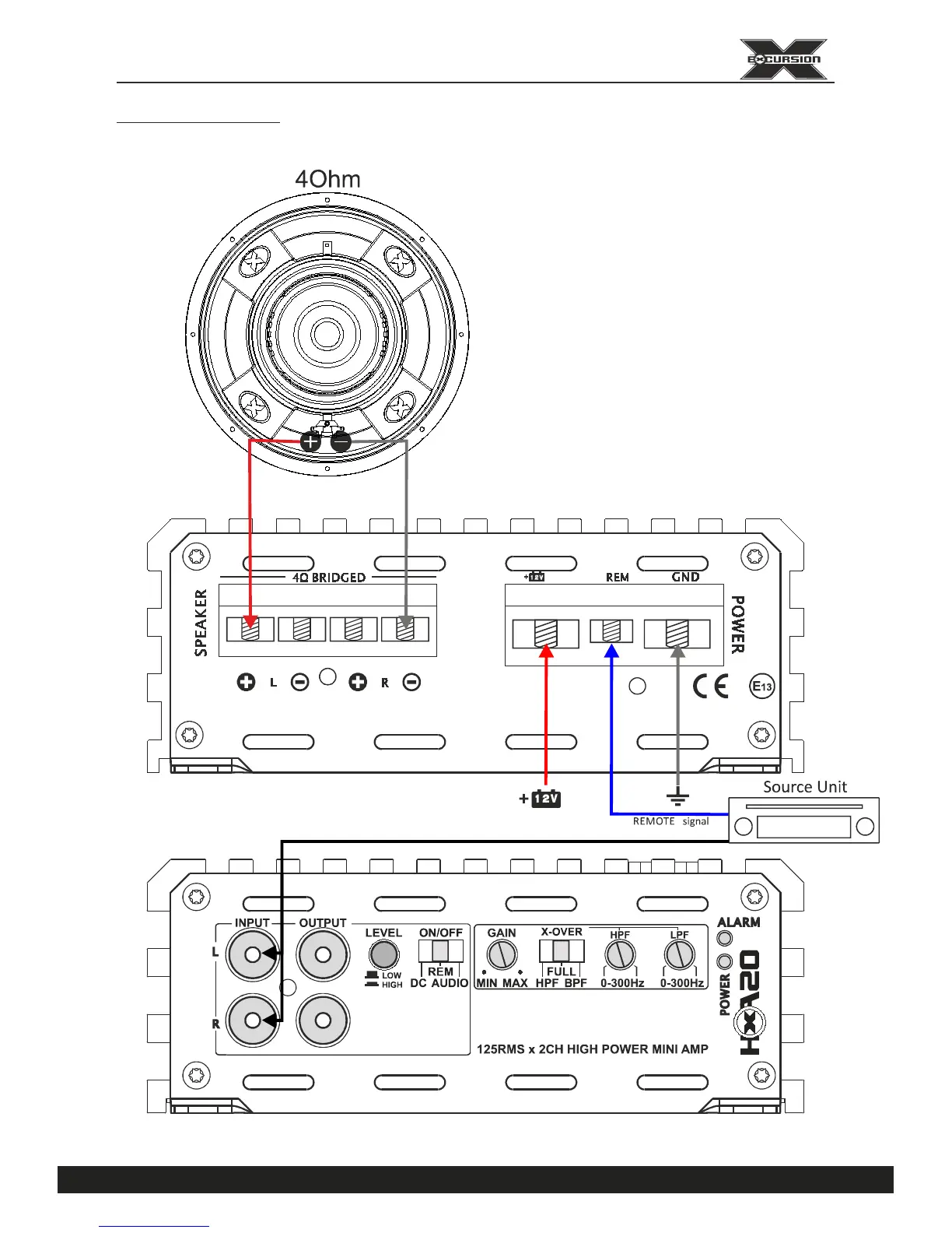 EXCURSION HXA2K - HXA 20; HXA 30; HXA 40 Wiring (1 Channel Mode)