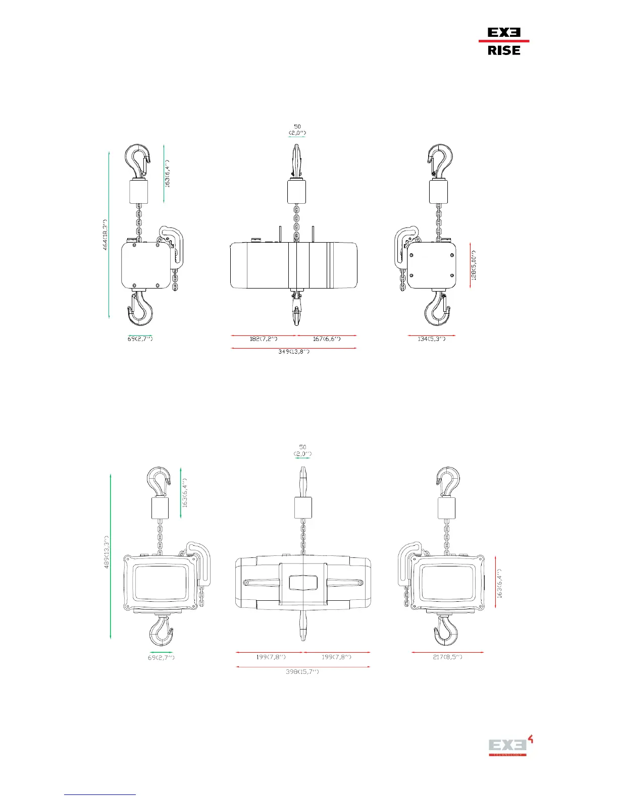 Figure 25: EXE-Rise DRAWING: 250kg D8 DC/LVC and 150kg D8+ DC/LVC