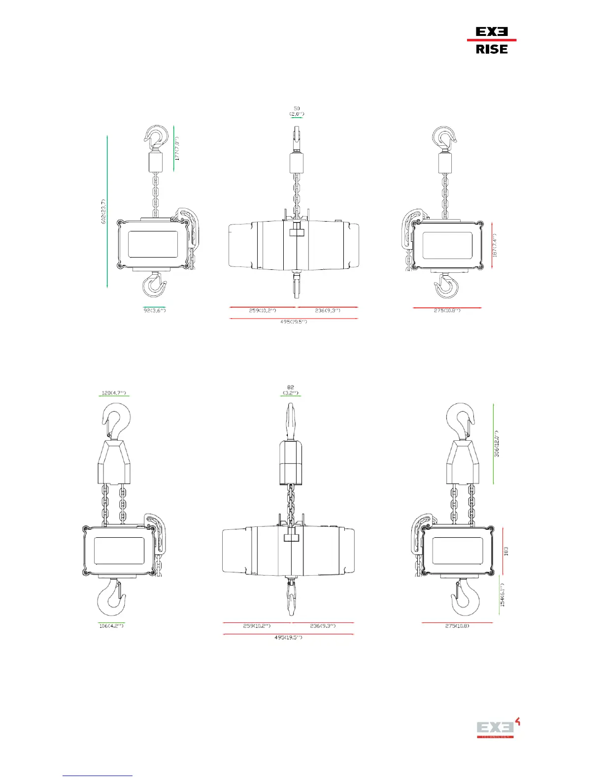 Figure 27: EXE-Rise DRAWING: 1000kg D8 DC/LVC and 600kg 800kg D8+ DC/LVC