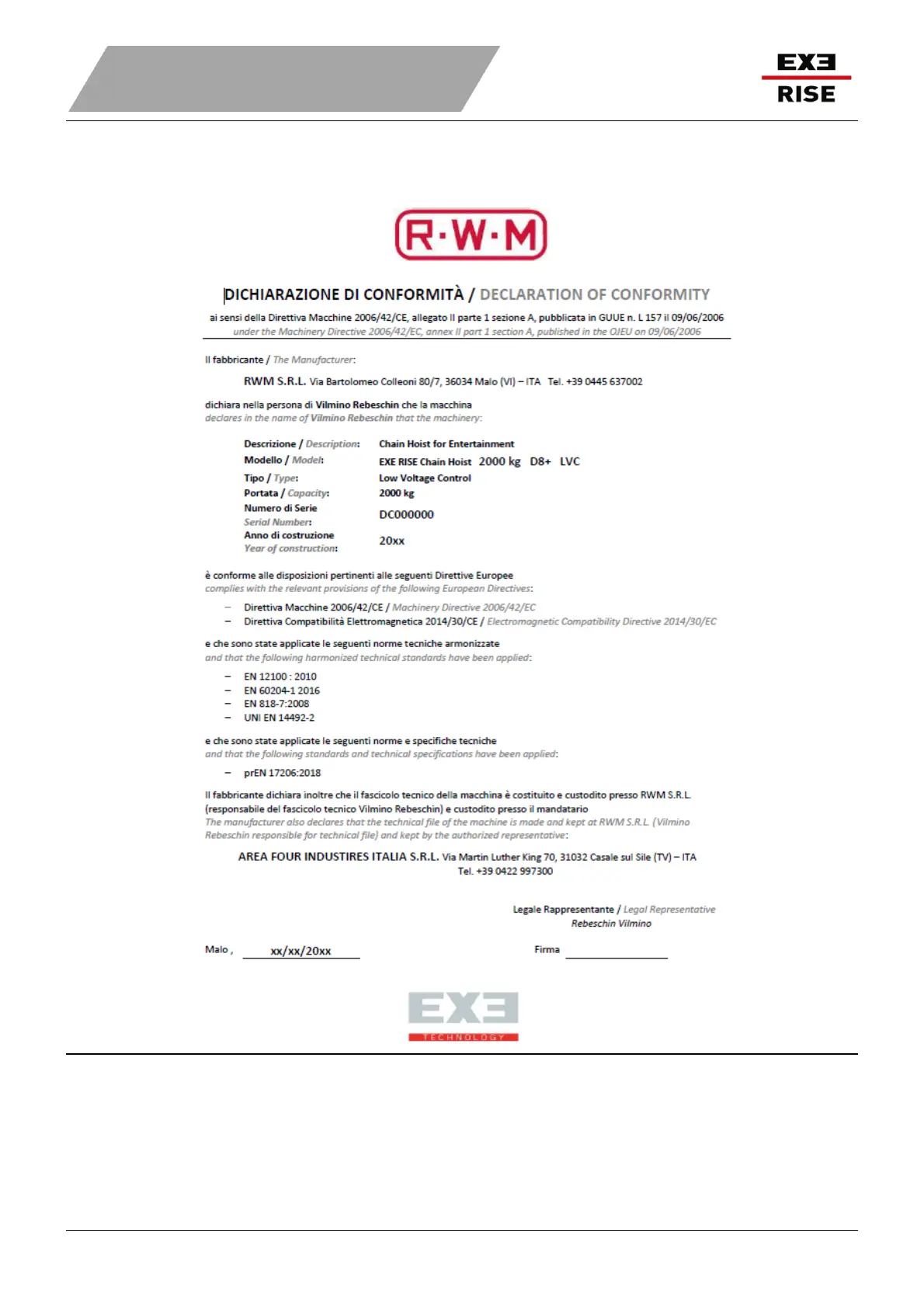 LLaanngguuaaggee:: EENN MMaannuuffaaccttuurreerr:: RRWWMM SS..RR..LL AAuutthhoorriisseedd rreepprreesseennttaattiivvee:: AARREEAA FFOOUURR IINNDDUUSSTTRRIIEESS IITTAALLIIAA SSRRLL