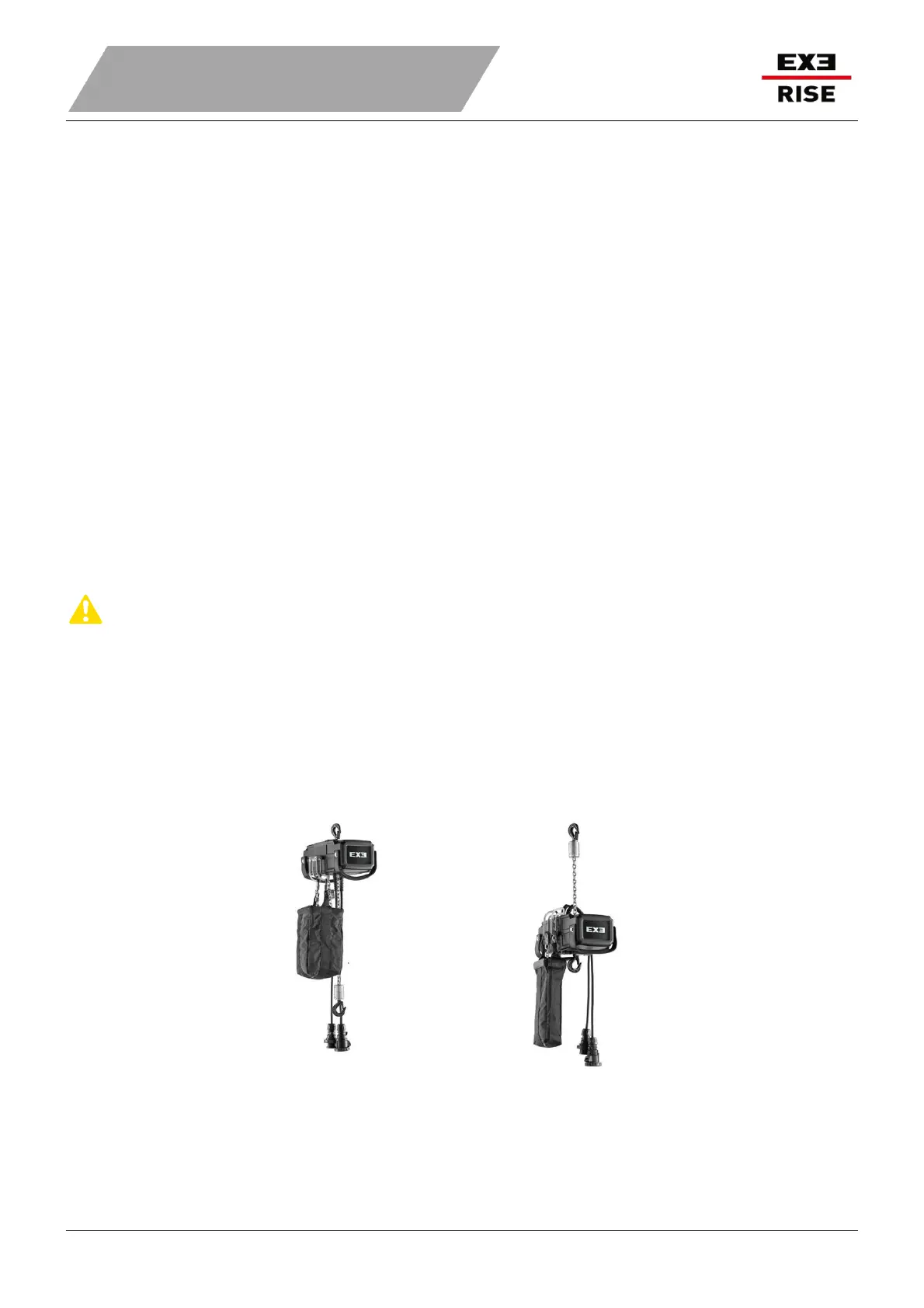 EXE RISE electric chain hoists are machines designed for professional use and must only be used by competent