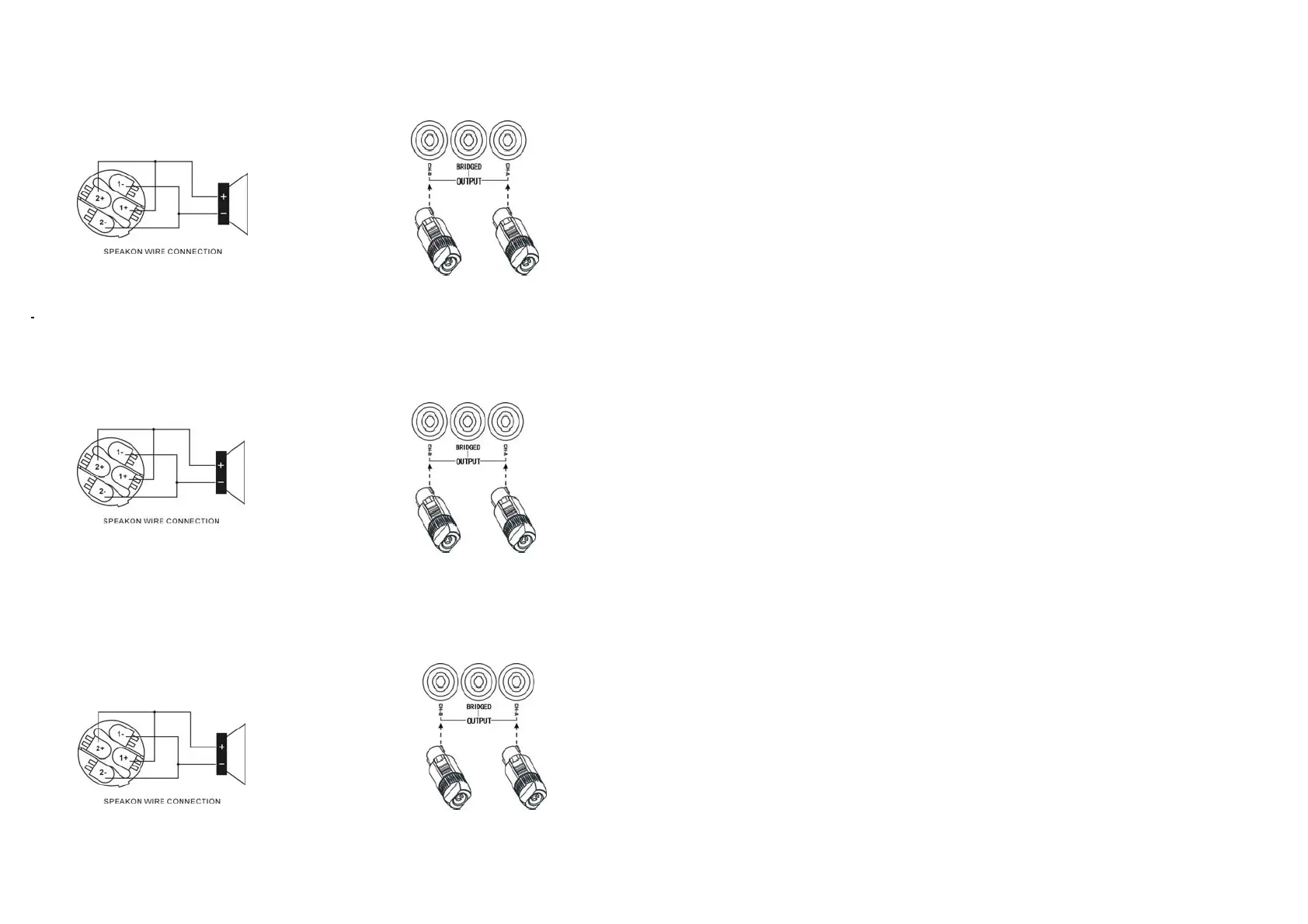 1-、2- Signal de sortie(-) connecté au pôle (-) du châssis de l’enceinte