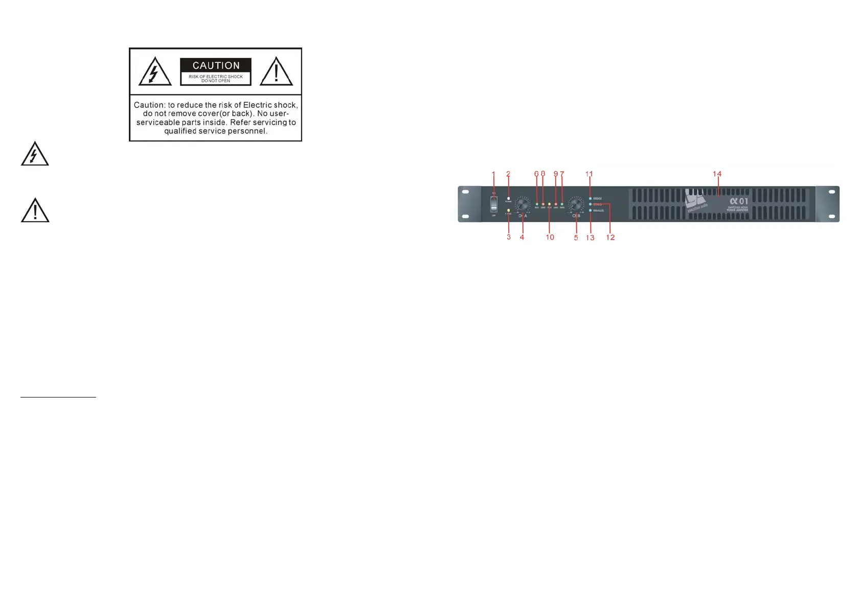 - If the amplifier does not power-up properly, turn it off immediately. Do not fix it yourself; contact your dealer
