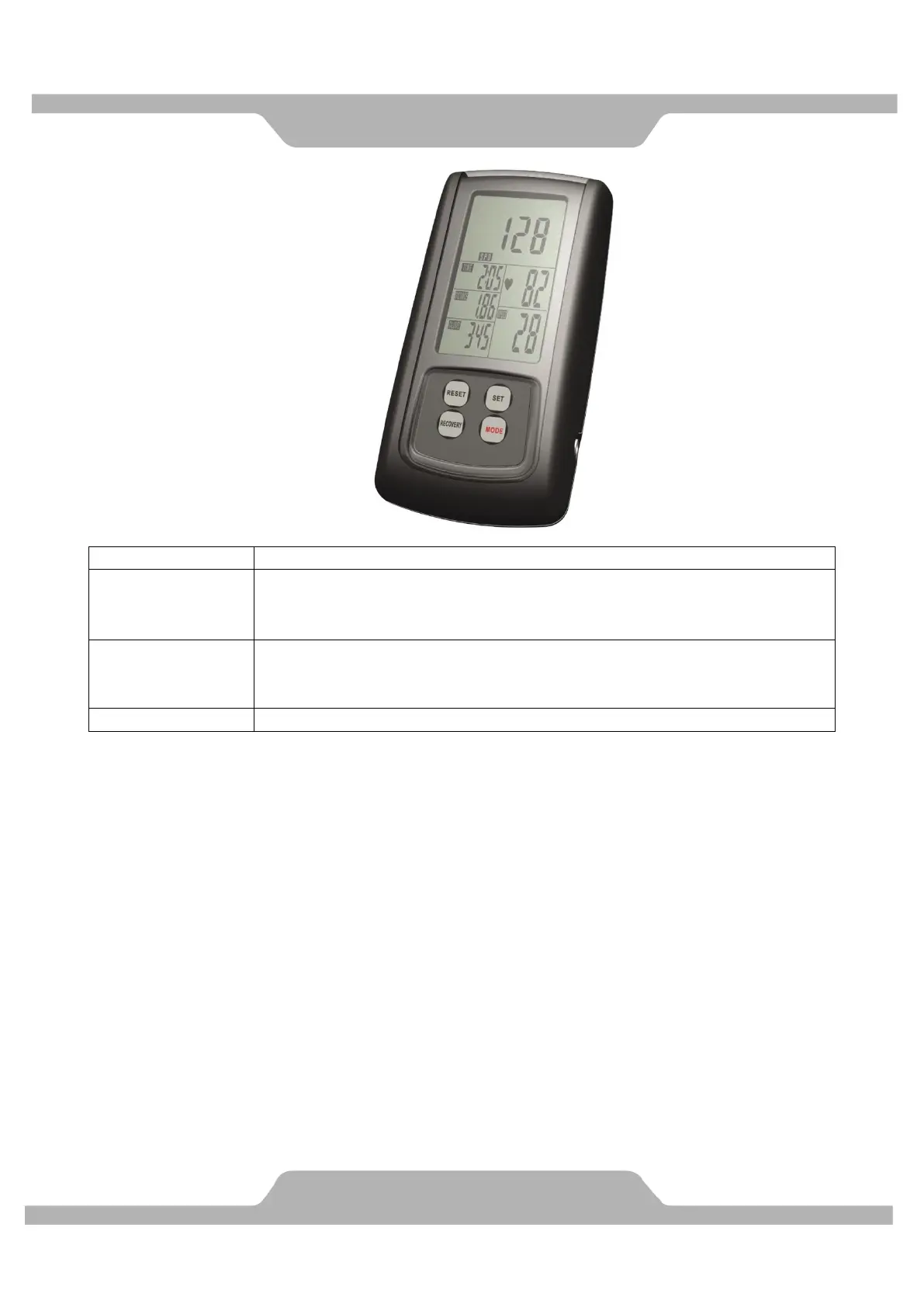 CALORIES: 1.You can press “SET” button to set target calories between 0 to 9990 for