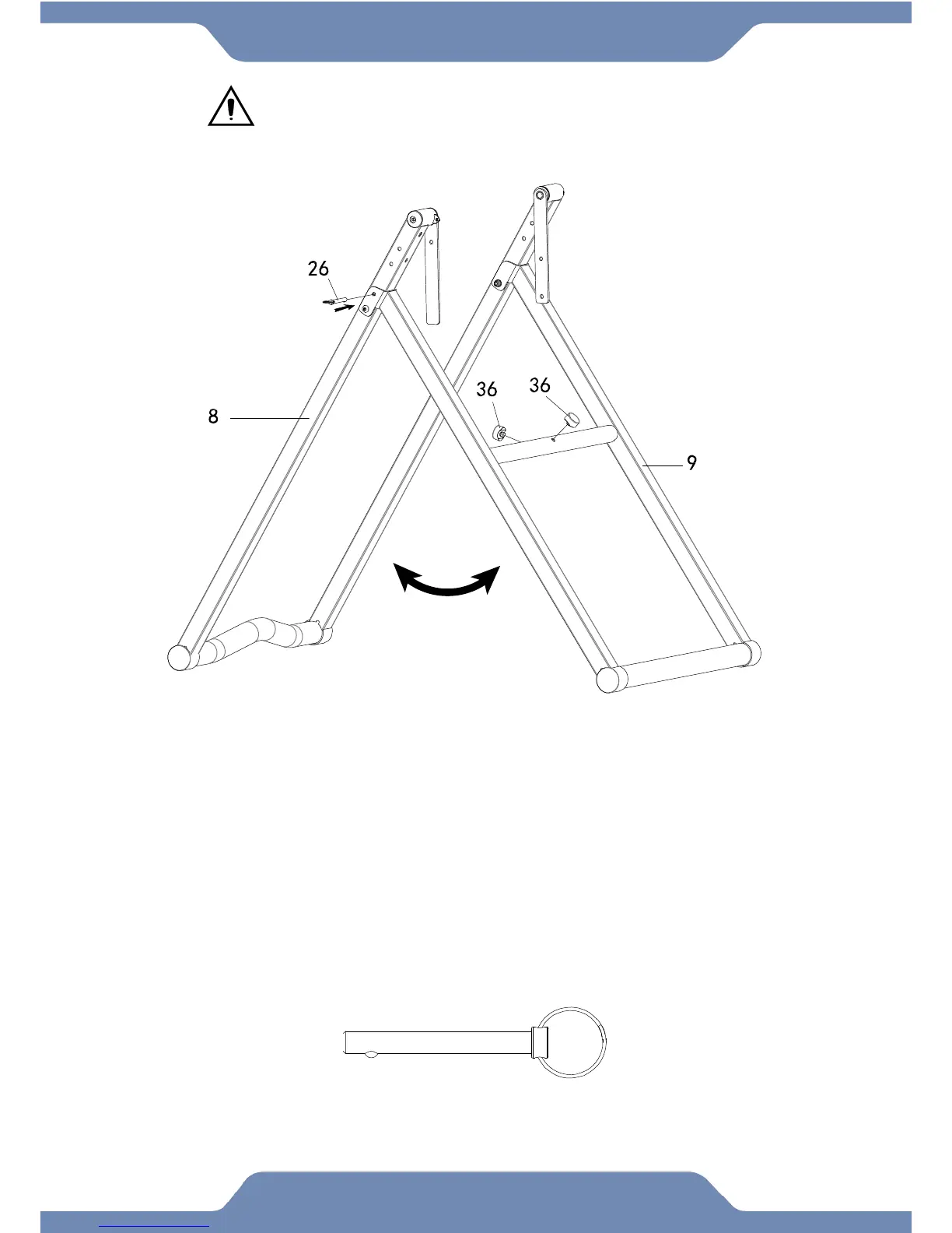 as possible. Then insert the Safety Pin (26) into the hole on the right side of the frame to lock the