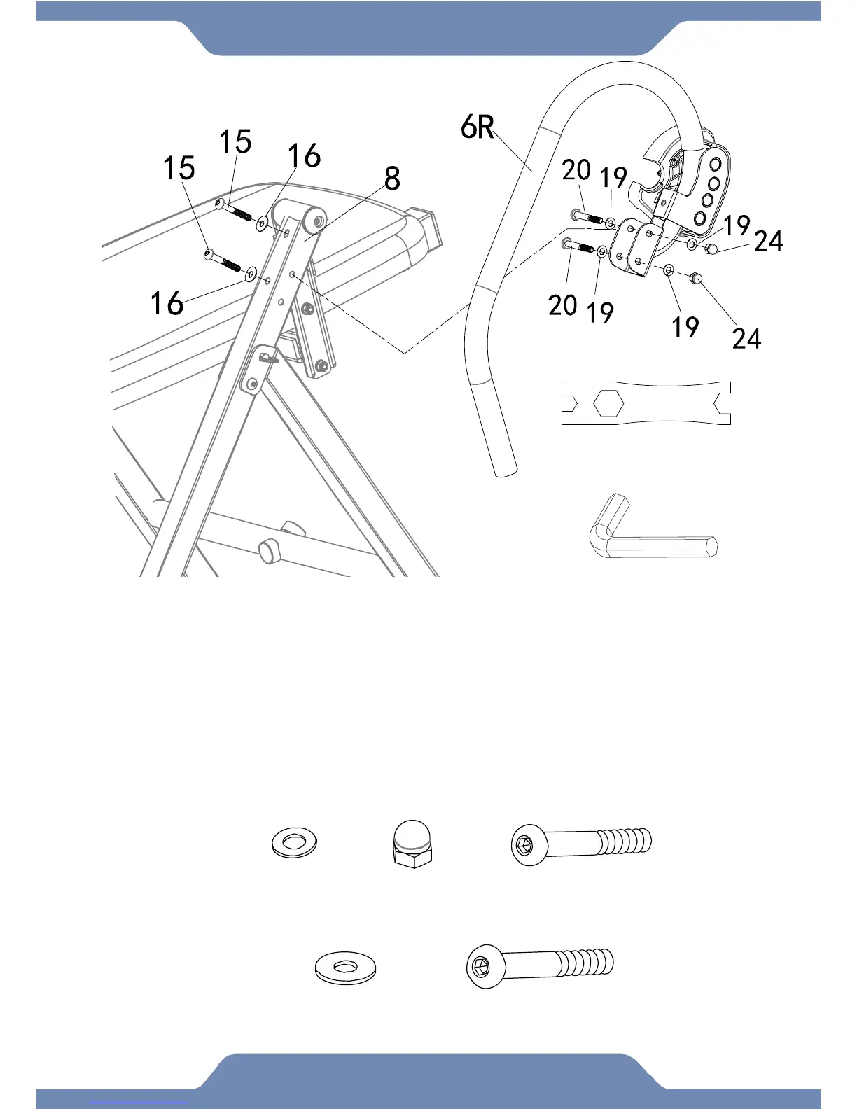 Hex Bolts (20), four Flat Washers (19), and two Cap Nuts (24).