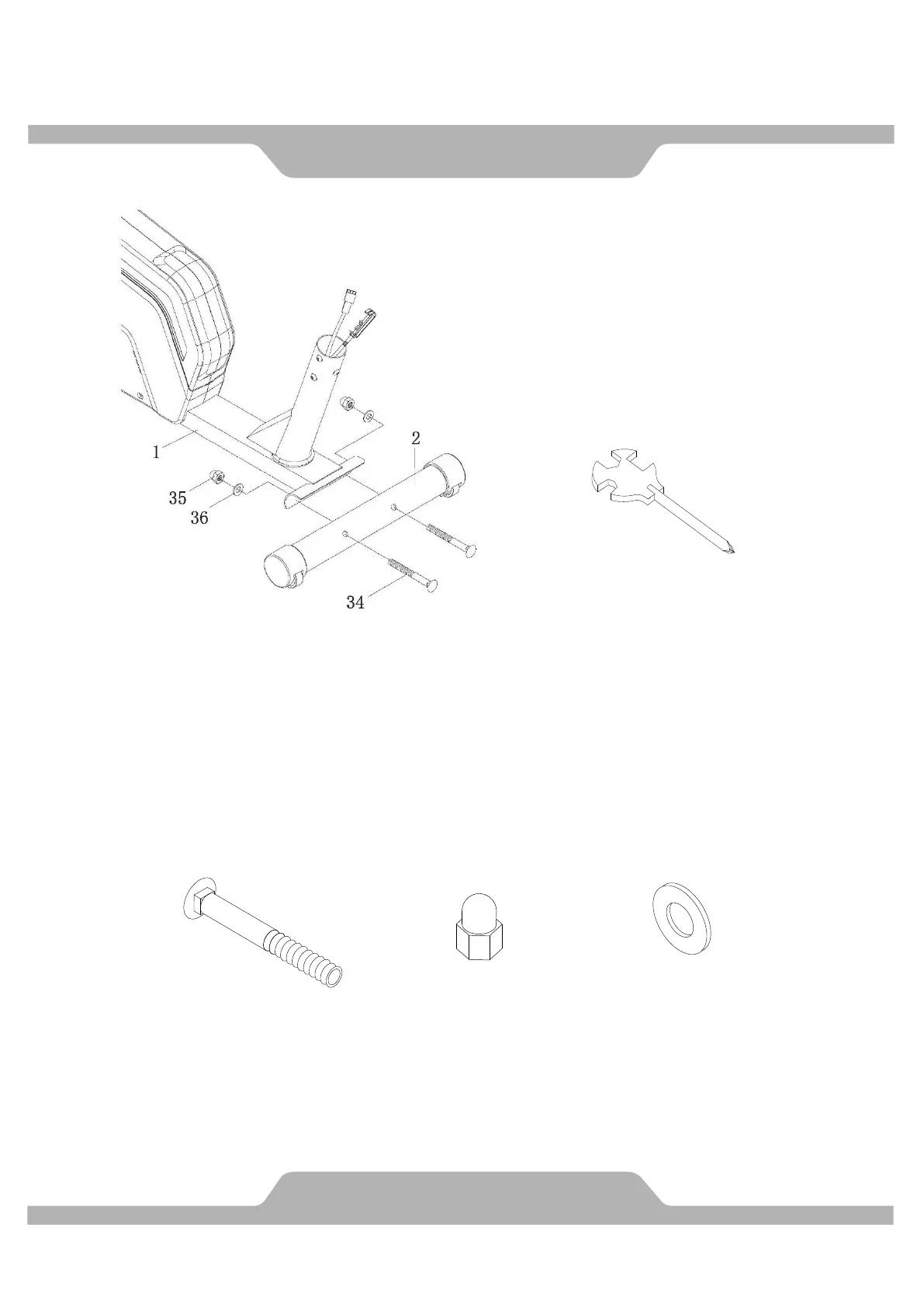 of bolts with two Washers (36) and two Cap Nuts (35). Hold the Front Stabilizer (2) to the