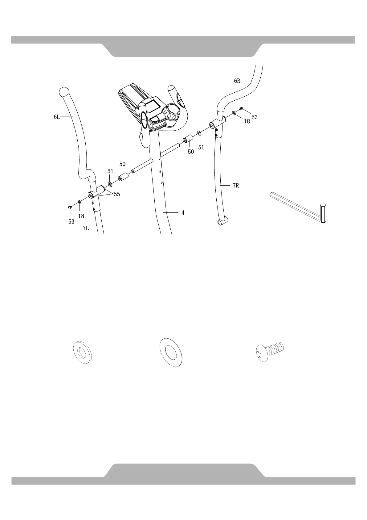 Bolts (53) and two Washers (18) to the front post by using Allen Wrench until firm and