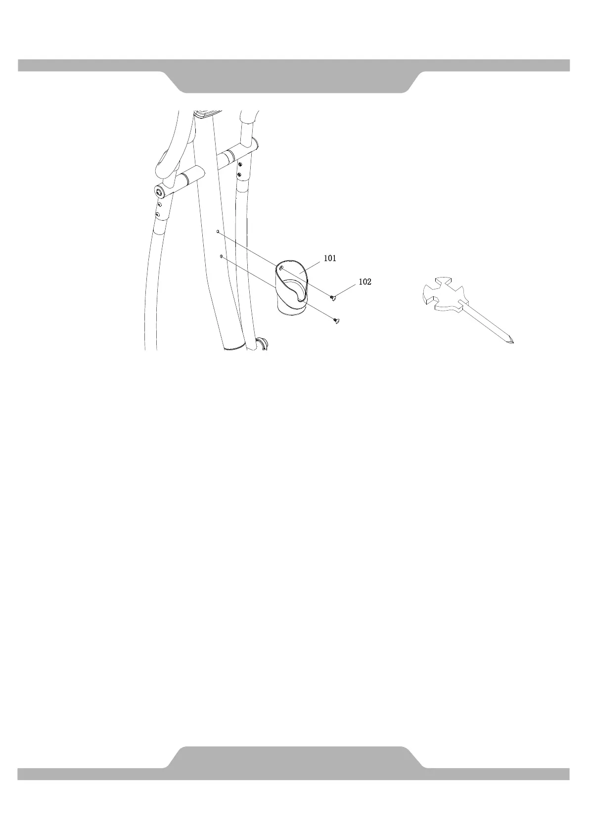 Remove two Bolts (102) on the Front Post (4). Attach the Bottle Holder (101) onto the