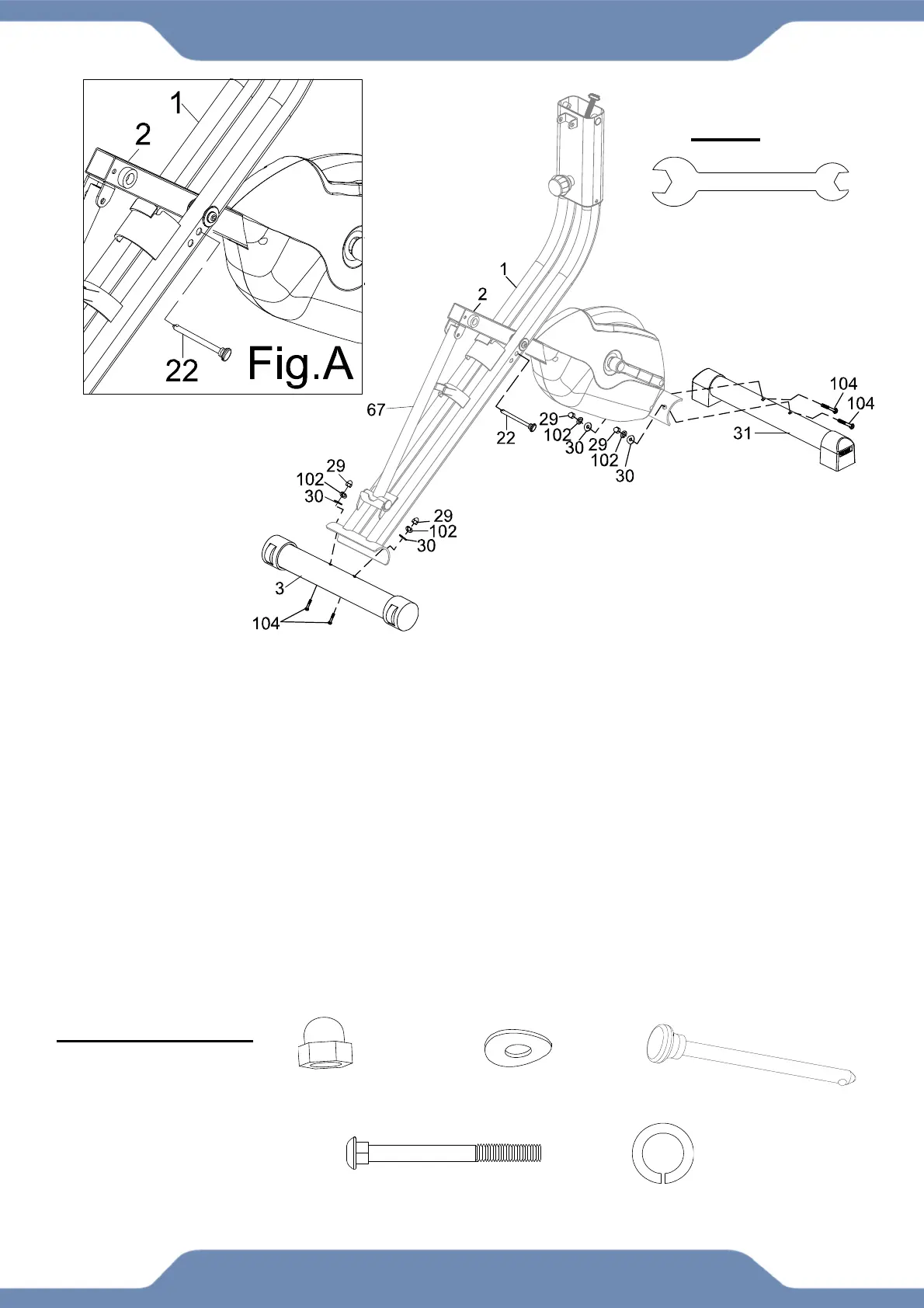 Rear Frame (1) intersect and insert the Safety Pin (22) into the aligned holes. See Fig. A. The