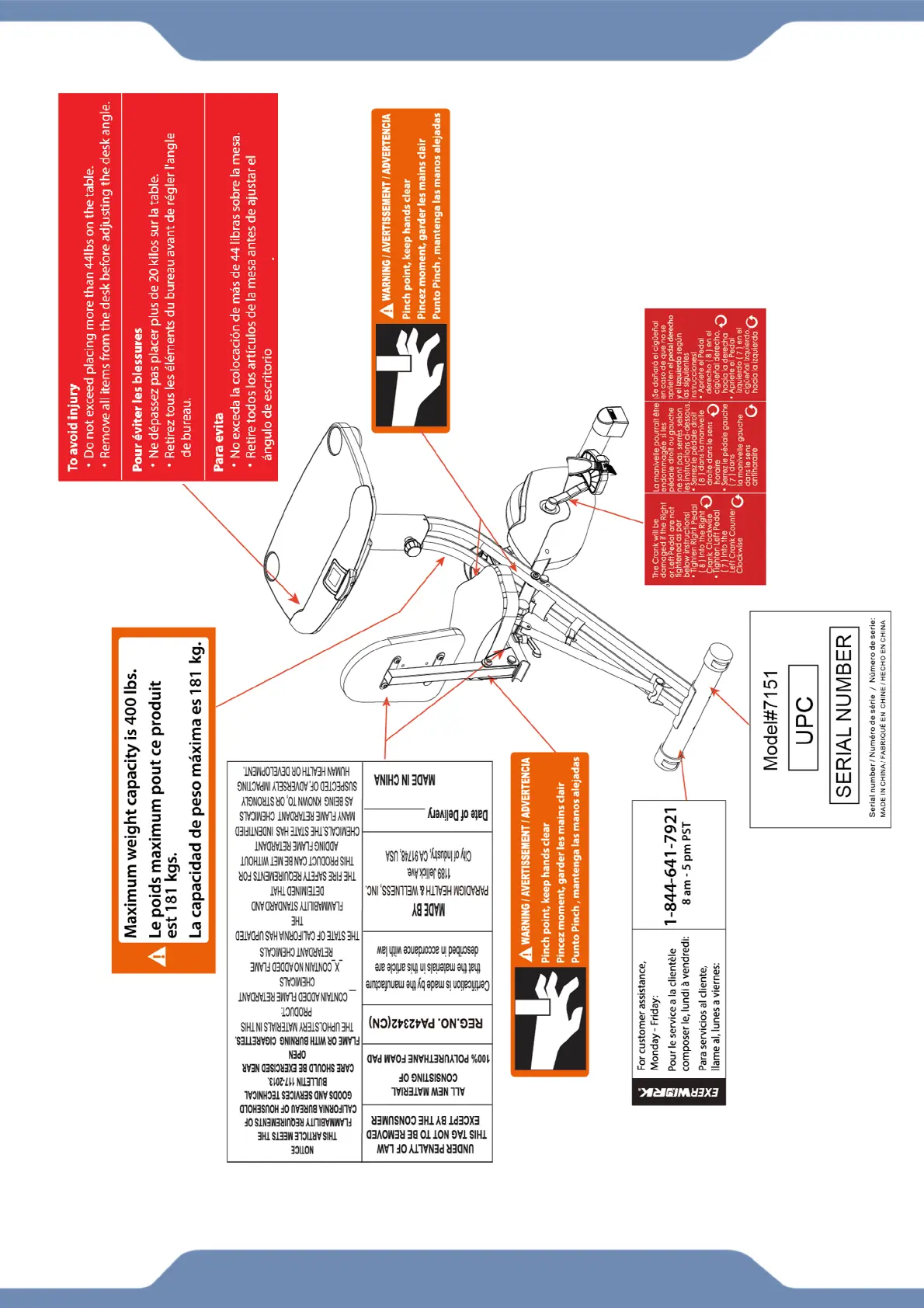 Exerpeutic EXERWORK 2000i - LABEL PLACEMENT; Safety Warnings