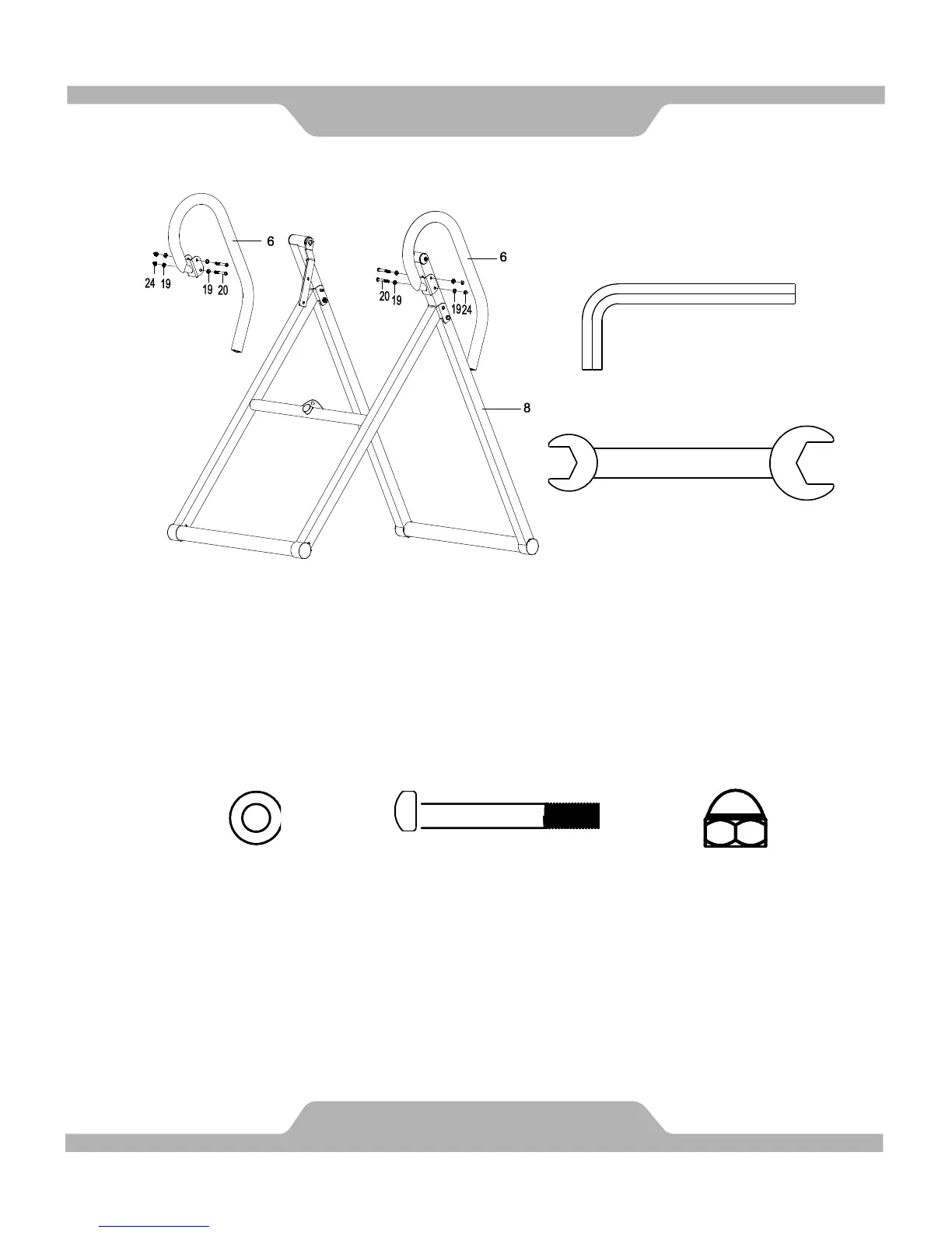 Washers (19). Tighten bolts and nut caps with the Wrench and Allen Wrench