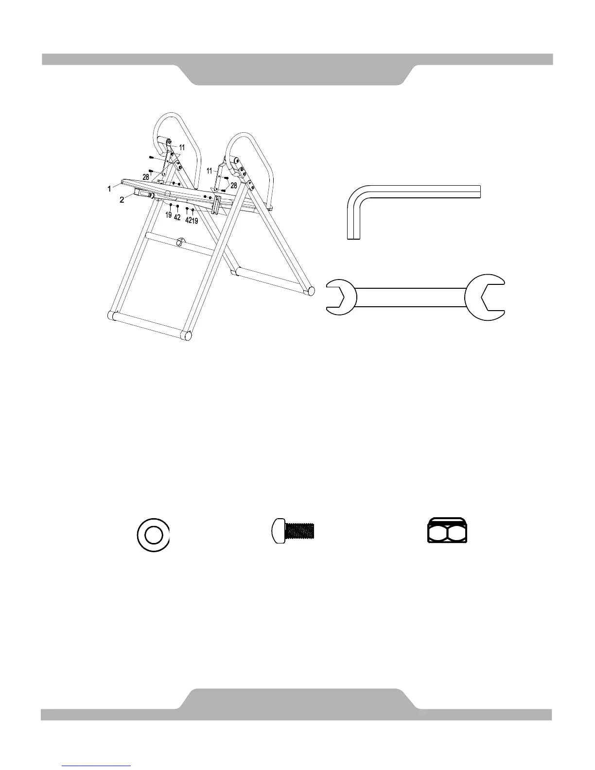 Washers (19), and four M8 Nylon Nuts (42) to attach the Backrest Frame (2)