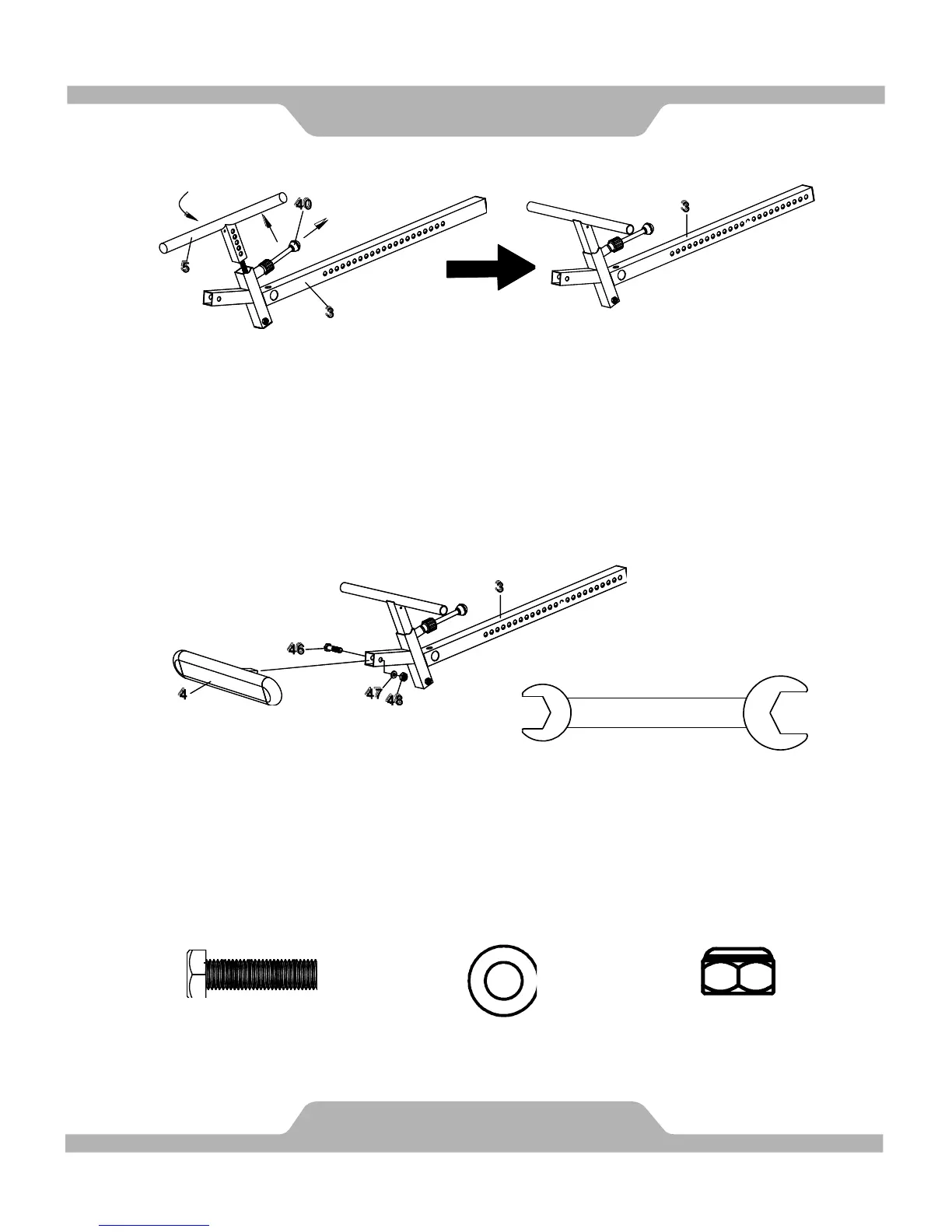 Foot Bar (4) in place using one M10x42mm Hexagon Head Bolt (46), one