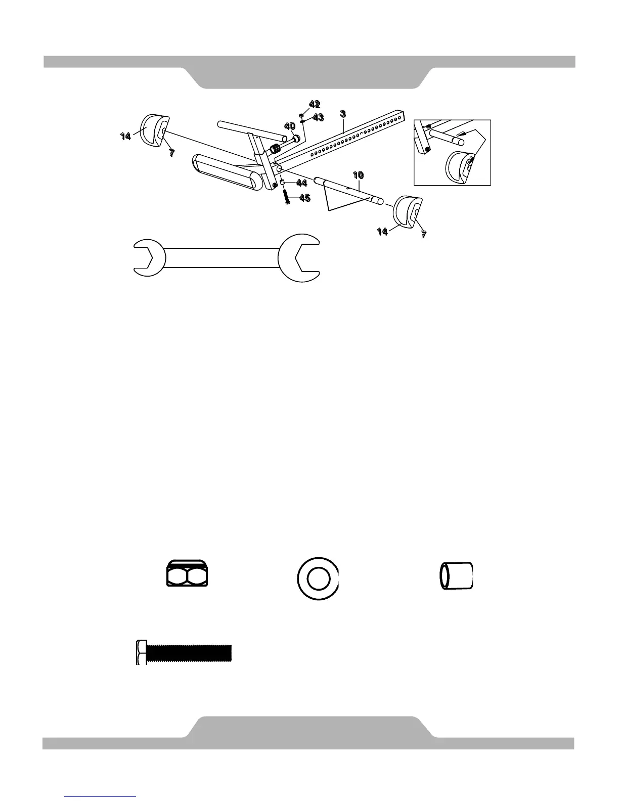 Ø16xØ8.5x2.0 Flat Washer (43), one Metal Bushing (44), and M8x48mm