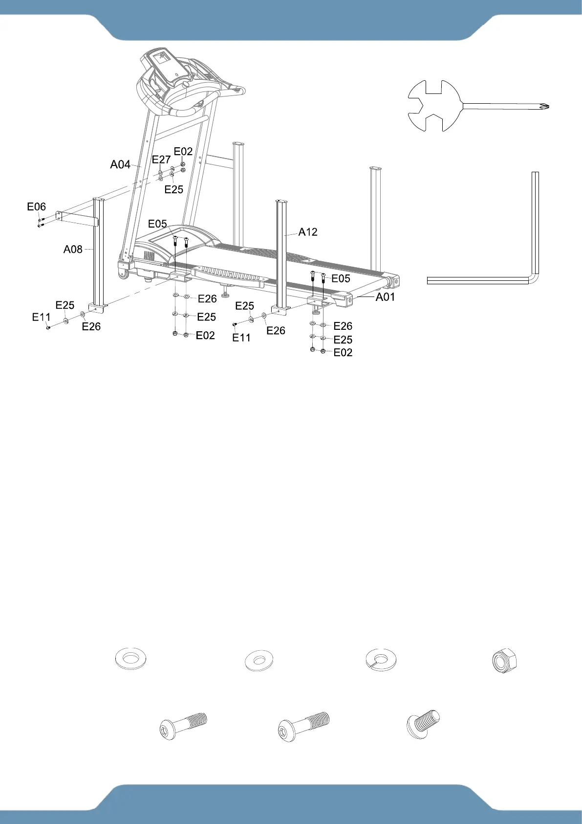 (A01). Insert one Bolt (E11), one Flat Washers (E26), one Spring Washer (E25).