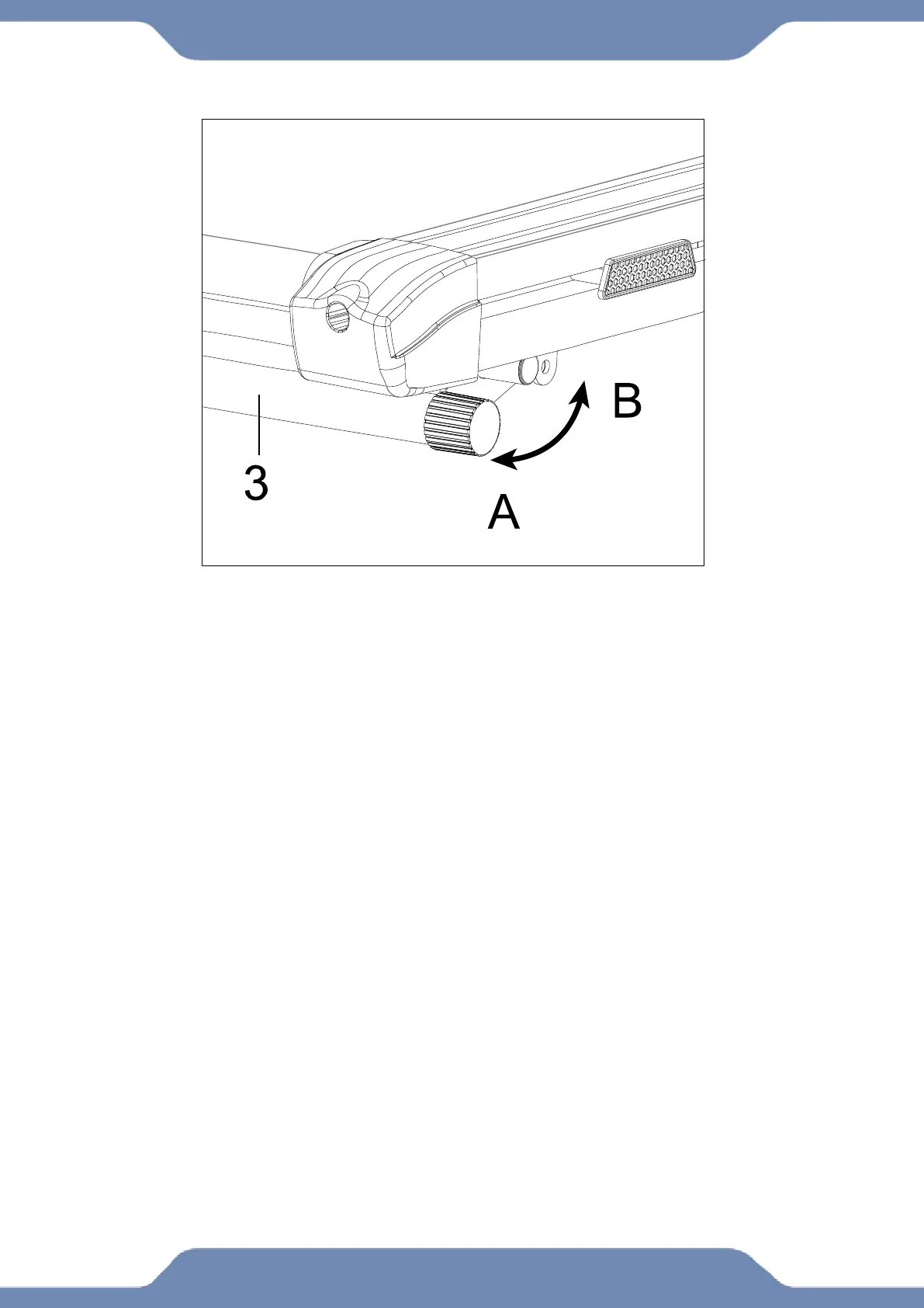 Raise the rear end of main frame then rotate the Incline Adjuster (3) to position A or B.