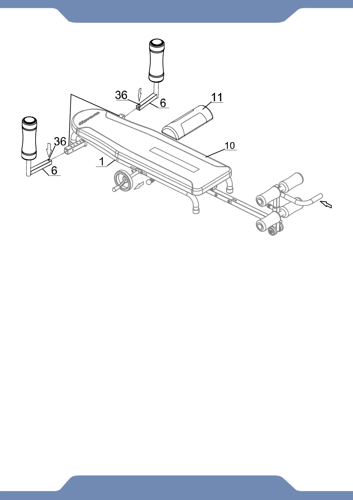 4A. Install the Adjustable Arm (6) on to the Main Frame (1). Depress Snap Button (36)
