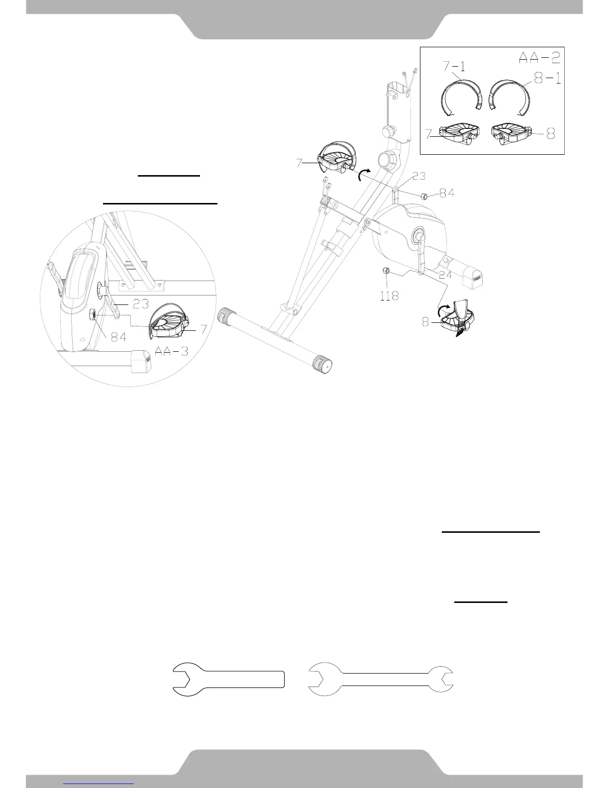 direction until snug.Then simultaneously tighten the Right Pedal (8) with the 13-15mm Wrench,