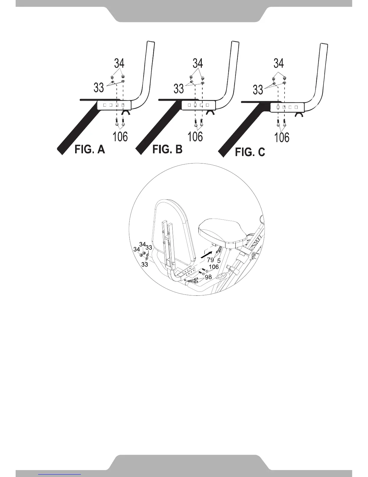 (98).Once a position is selected, install the two Carriage Bolts (106), two Flat